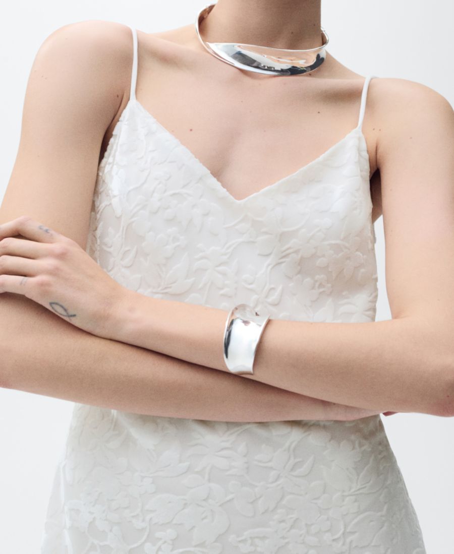 Женское платье с цветочным жаккардовым узором MANGO, Off White