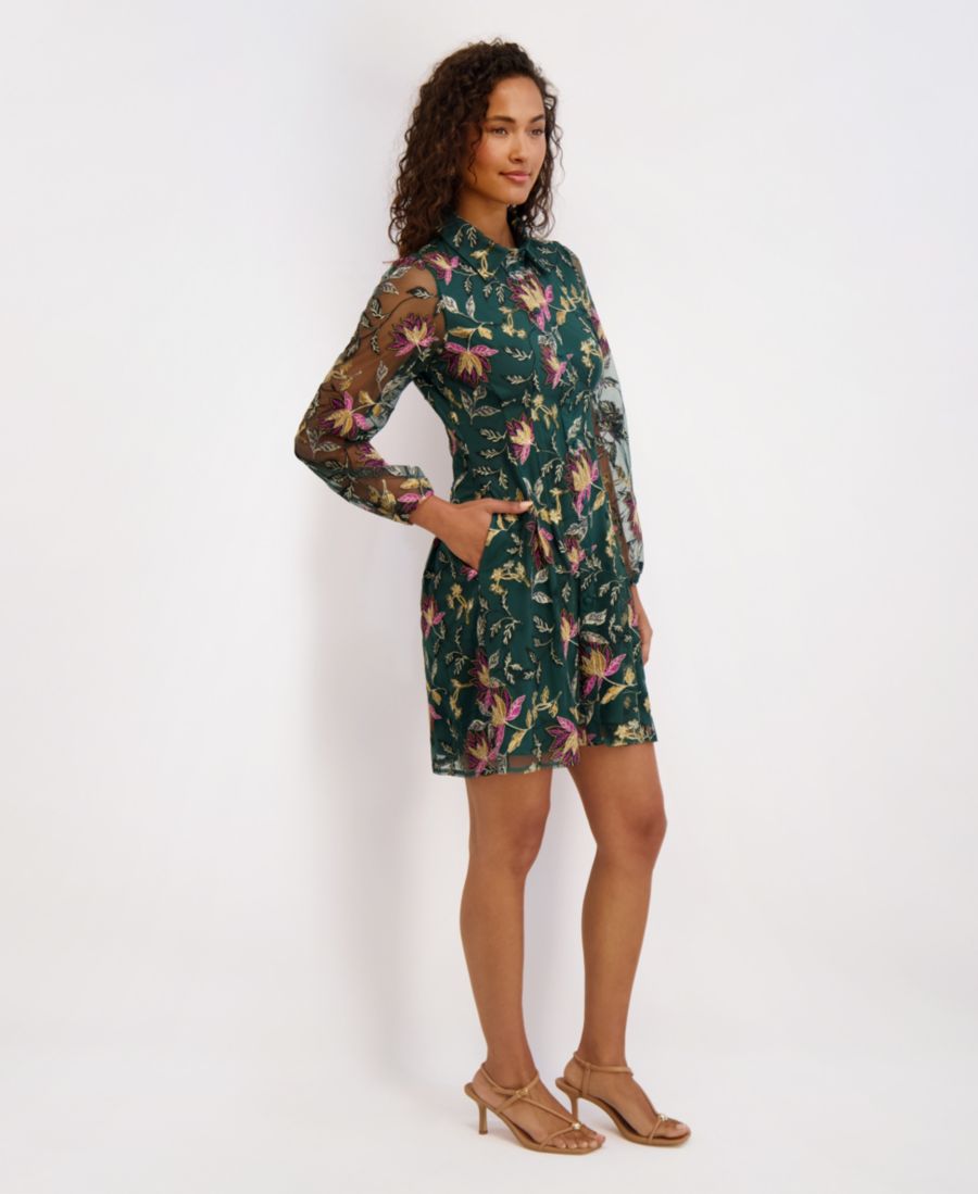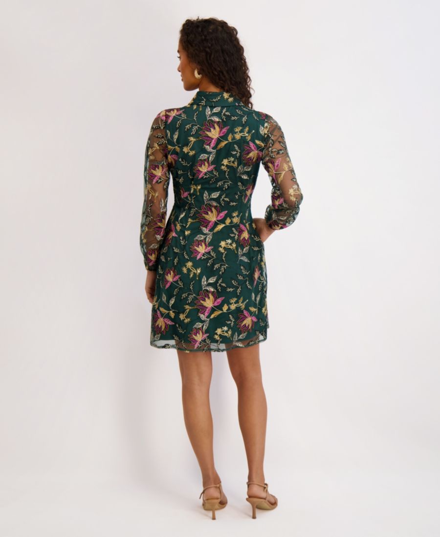 Это платье от Kensie, украшенное вышивкой по всей поверхности сетчатым узором, создает фактурный и изысканный образ. Воротник и застежка-молния придают ему утонченный и современный вид.