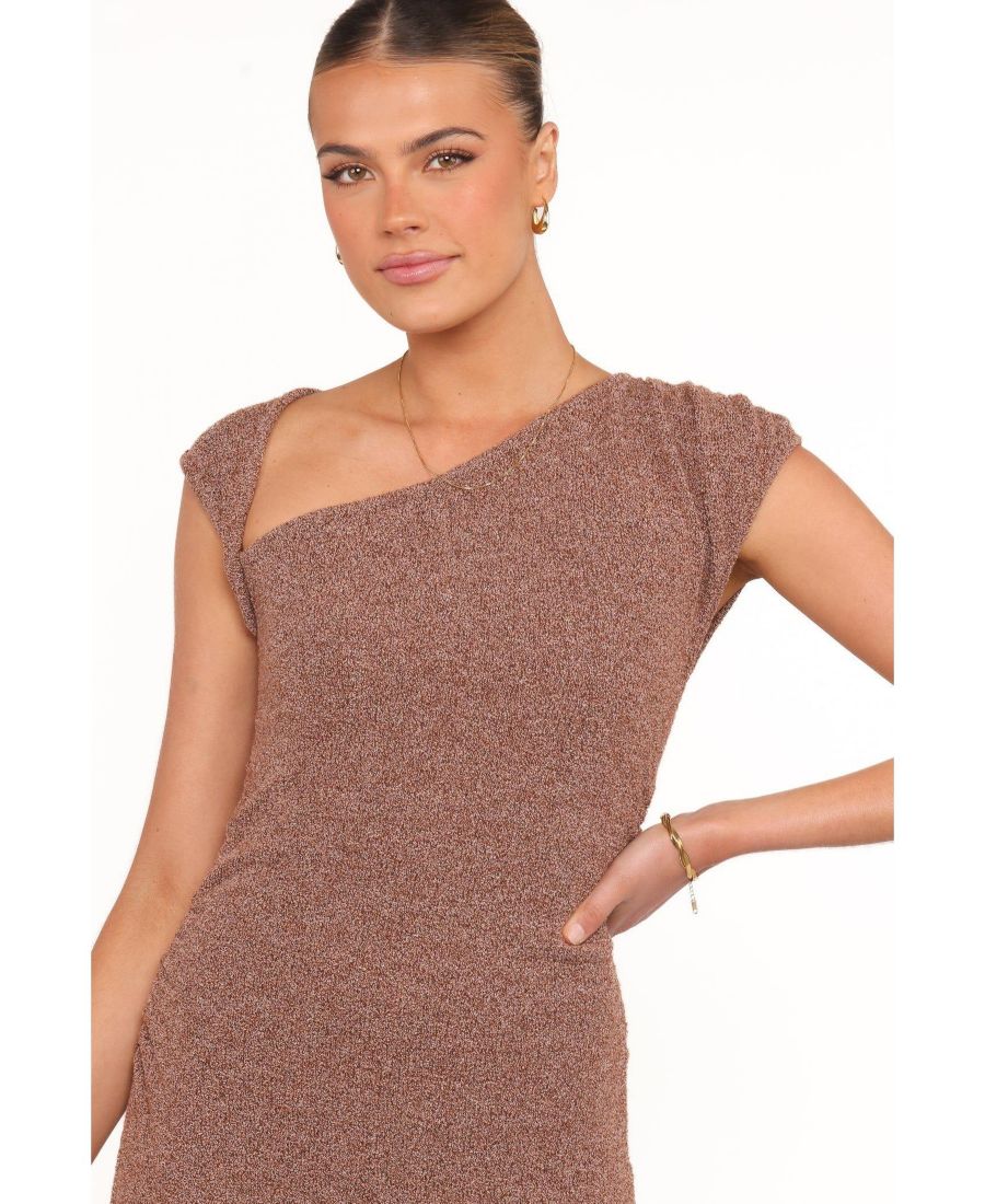 Подчеркните свою элегантность с помощью платья-миди Talisa в коричневом меланжевом цвете. Изысканная длина миди и асимметричный вырез делают это платье воплощением непринужденного шика.