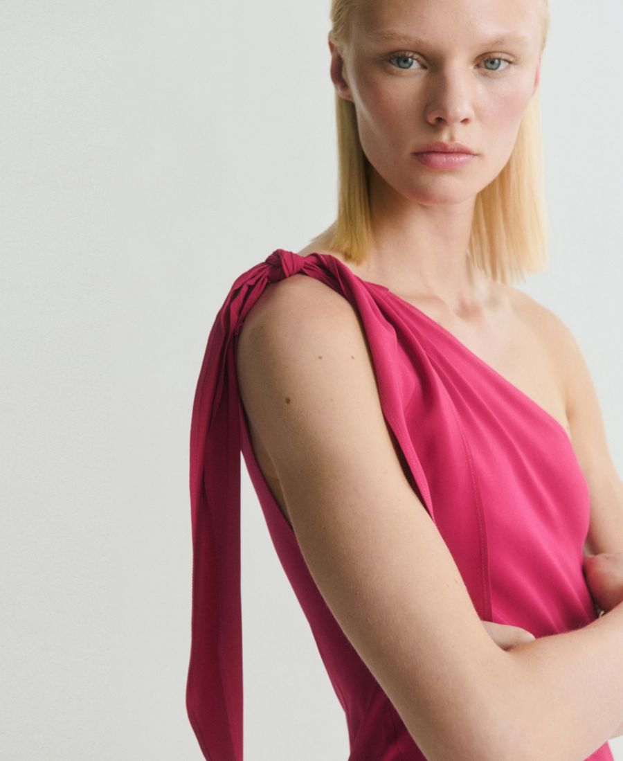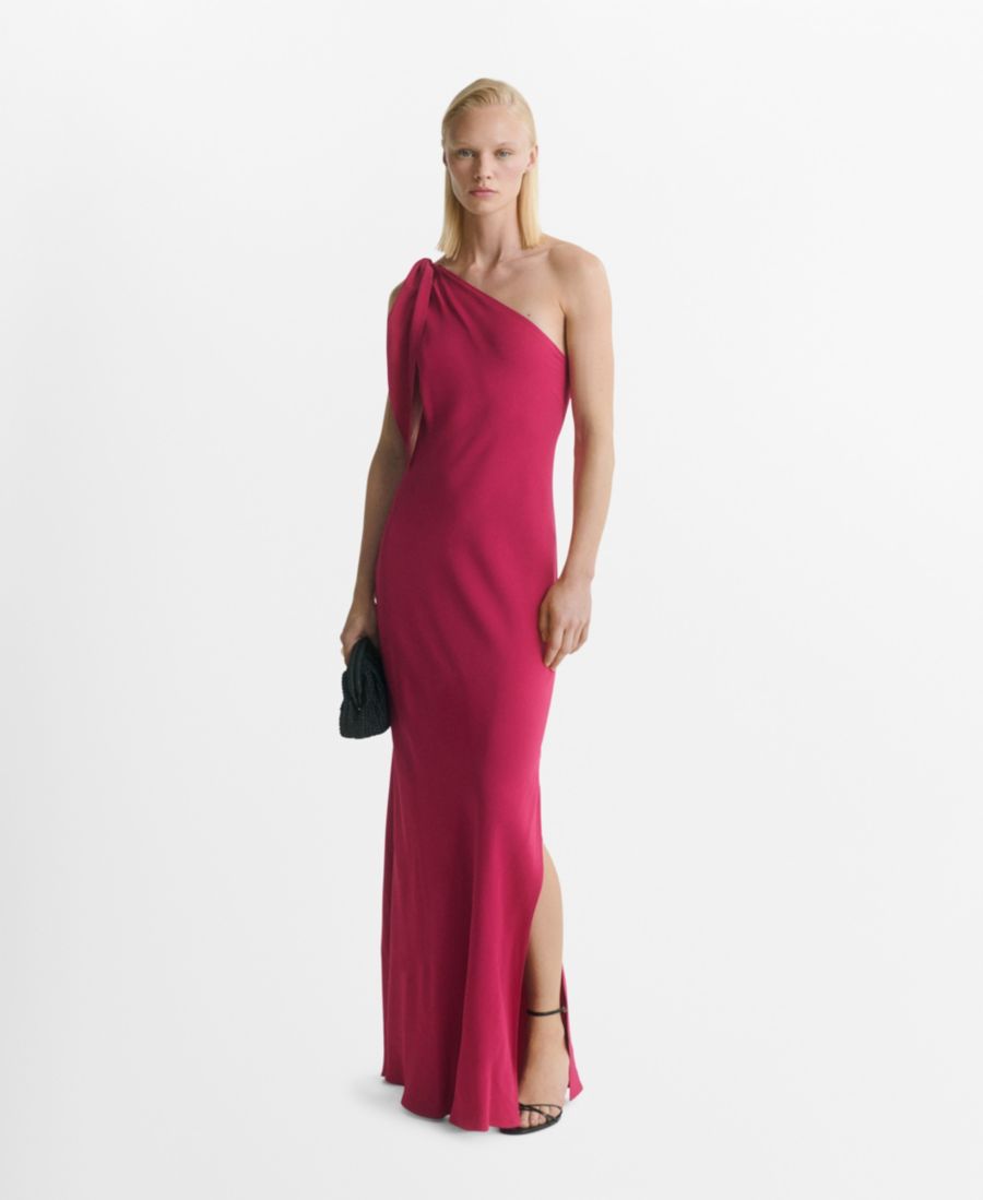 Женское асимметричное платье с узлом на бретелях MANGO, Strawberry