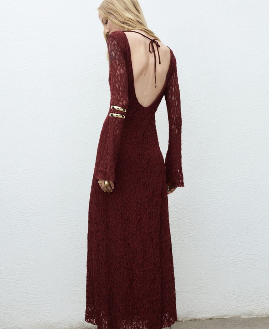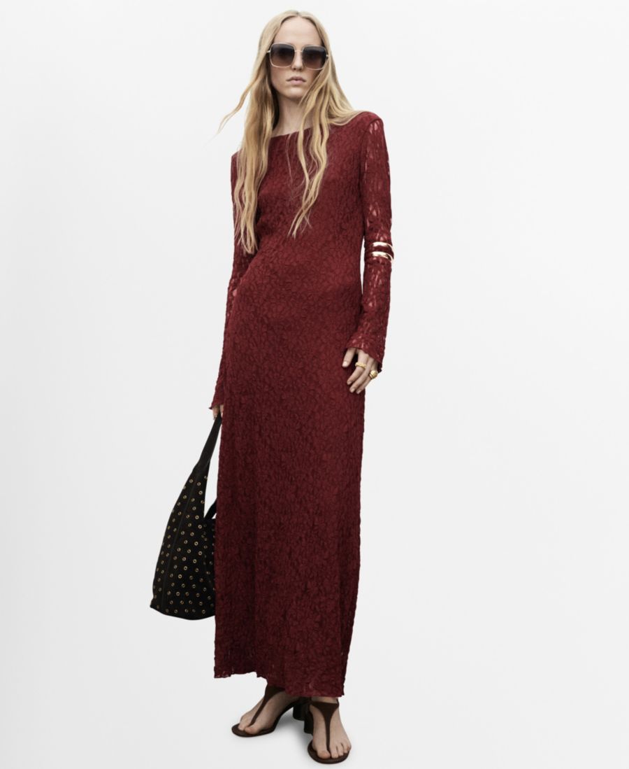 Женское кружевное платье с рукавами-колоколами MANGO, Wine