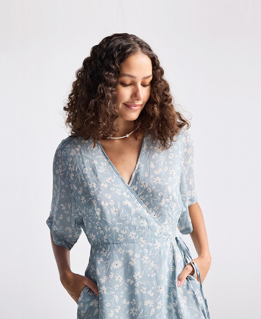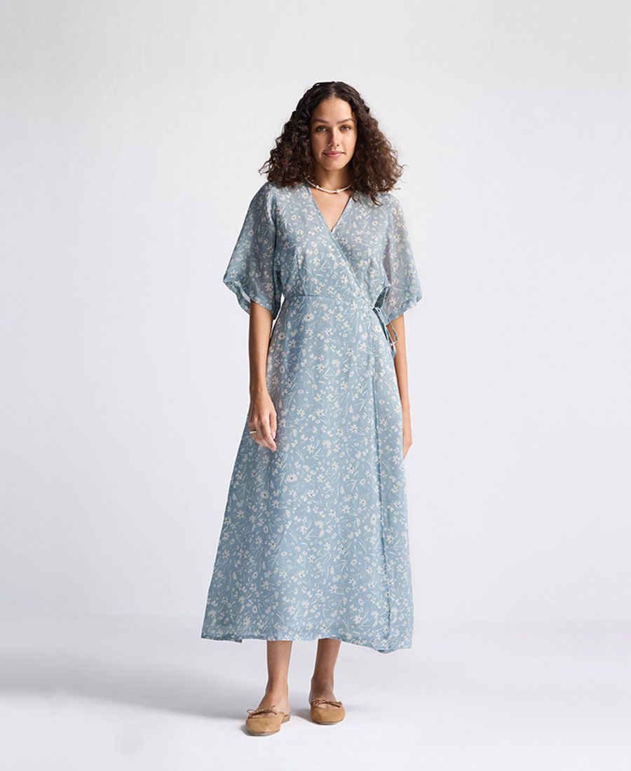 Это платье-халат с цветочным принтом легко драпируется и не требует особых усилий для создания стильного образа. Свободные рукава и пояс на талии подчеркнут достоинства вашей фигуры.