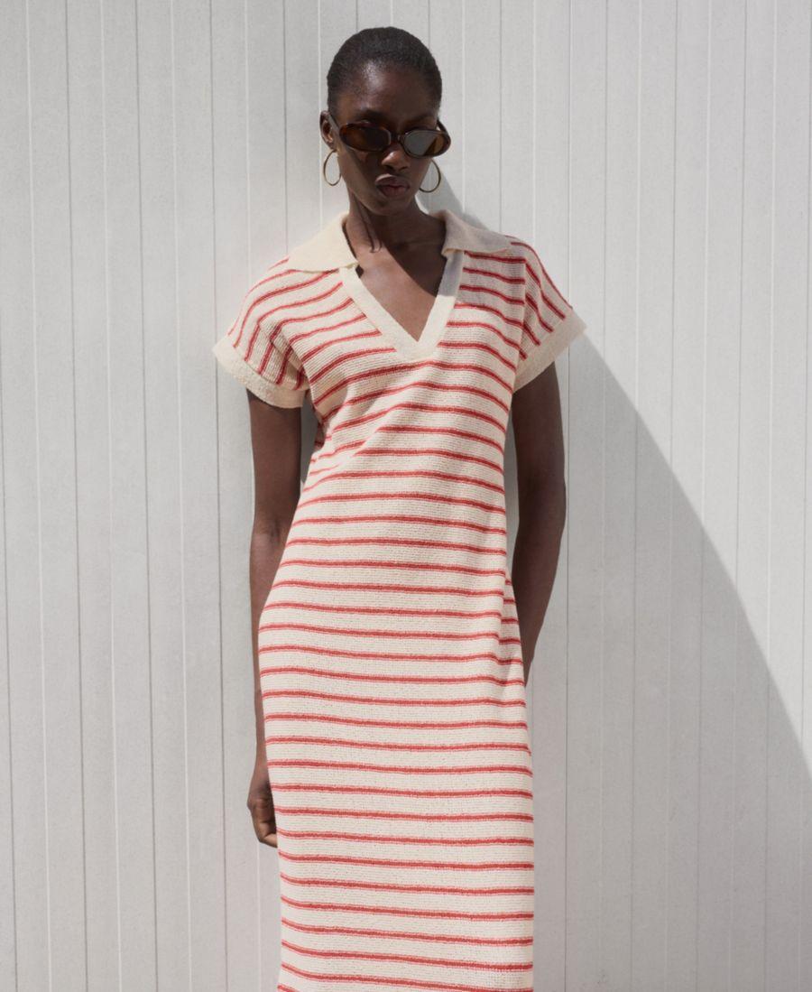 Женское длинное полосатое вязаное платье MANGO, Red 7 129₽