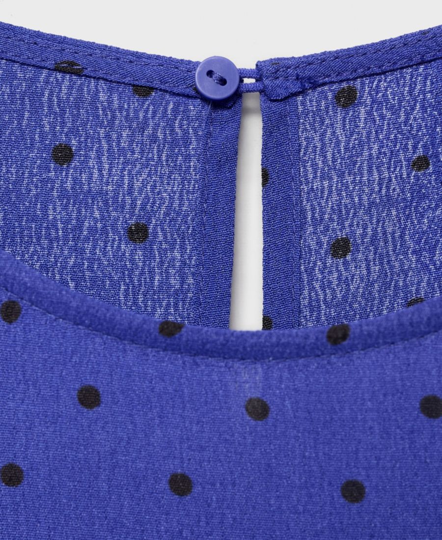 Стиль сочетается с горошком в миди-платье Polka Dot от Mango. Это платье миди имеет прямой крой, горошек, без рукавов, широкие бретели, регулируемую завязку сзади и разрез сзади.