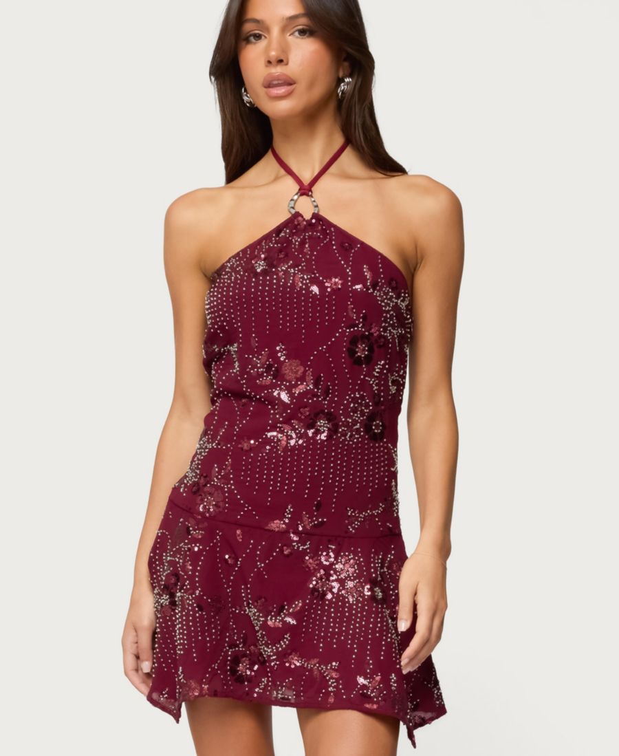 Женское мини-платье Adria с бисером и пайетками Edikted, Burgundy