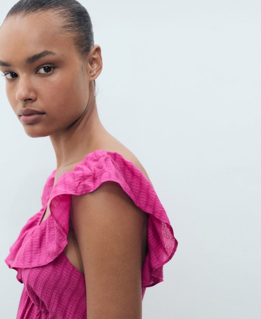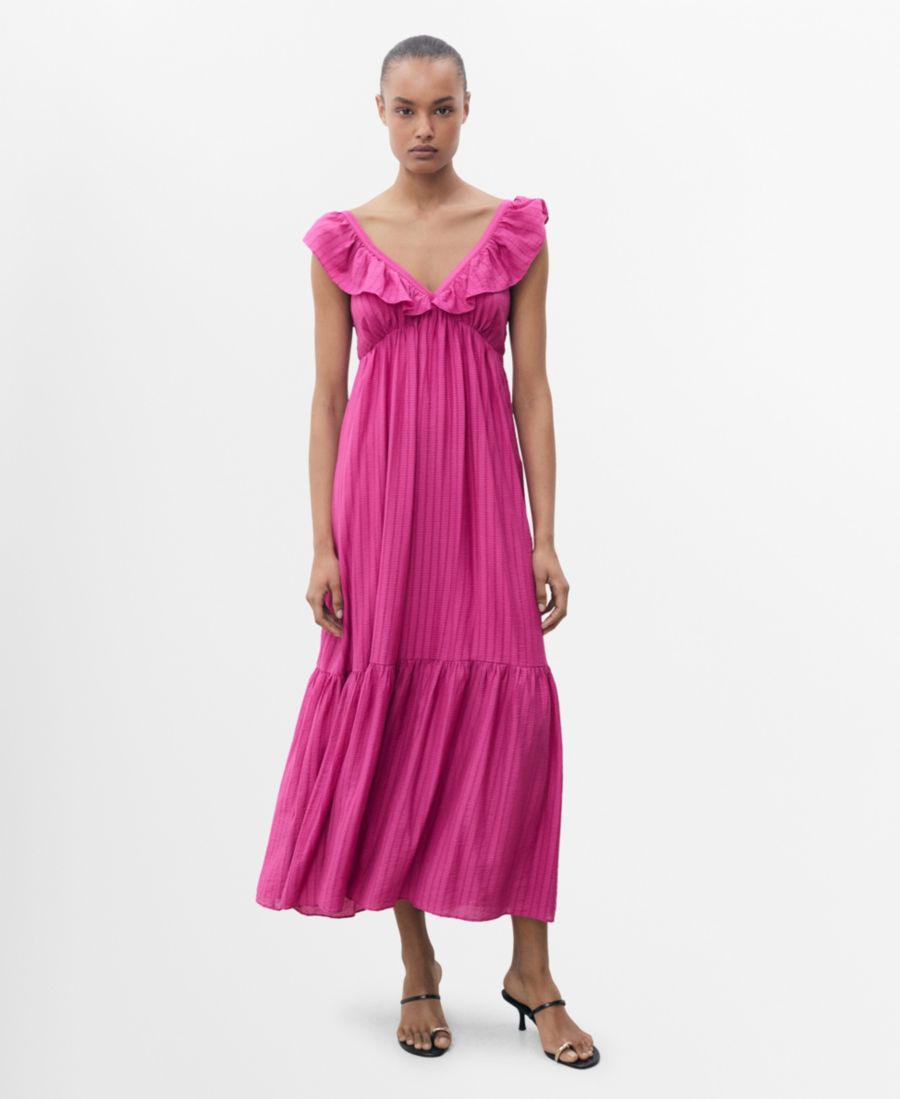 Женское длинное платье с оборками на воротнике MANGO, Fuchsia