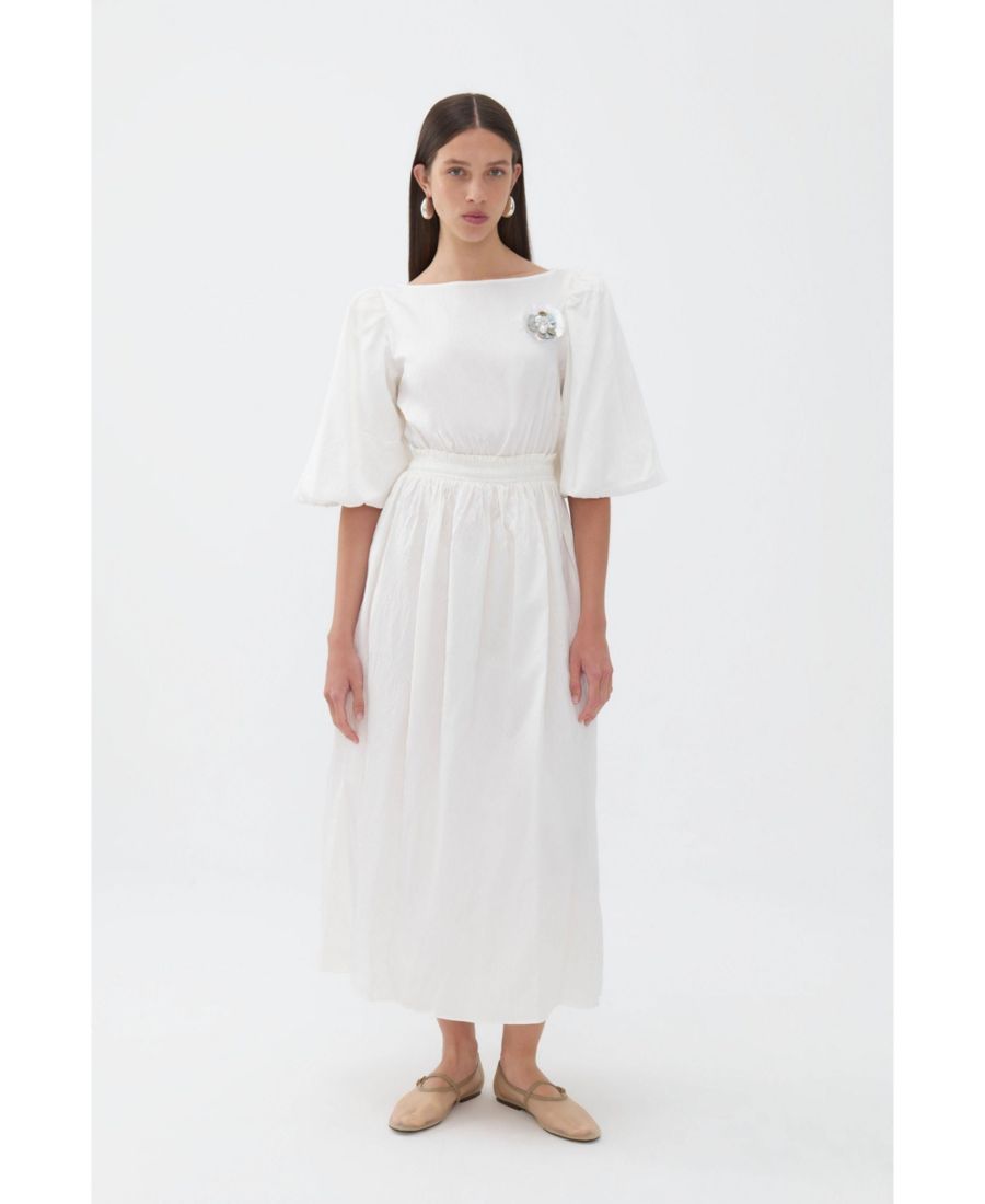 Женское длинное платье с рукавами-баллонами NOCTURNE, Ecru