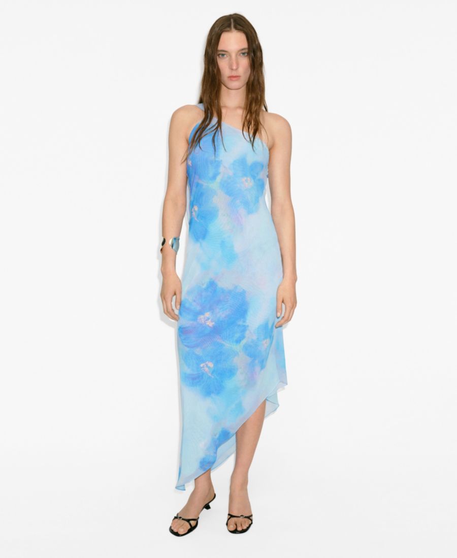 Женское асимметричное платье-шарф с цветочным принтом MANGO, Blue