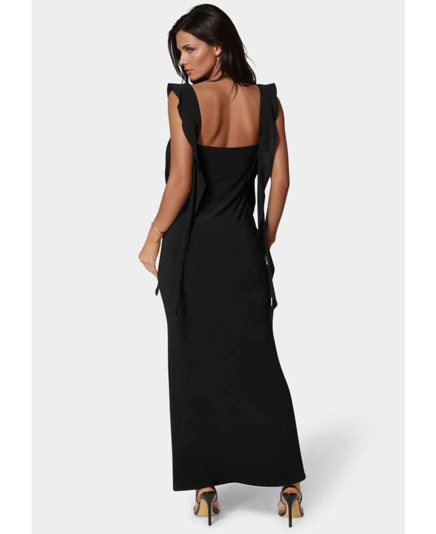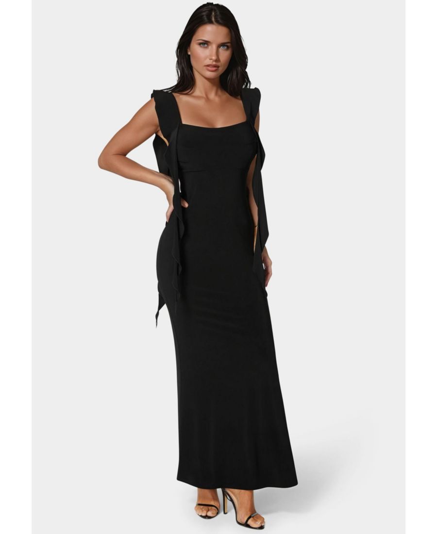 Платье Bebe Women's Jersey Cascade Ruffle Dress отличается элегантным и выгодно подчеркивающим фигуру дизайном, который акцентирует силуэт благодаря каскадным оборкам.