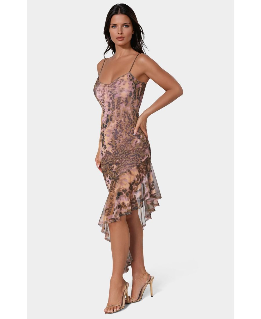 Женское платье Cascade с асимметричным подолом и сетчатой текстурой Bebe, Leopard