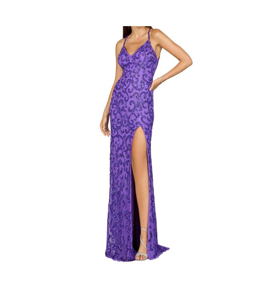 Женское соблазнительное платье с бисером и разрезом Lara, Purple