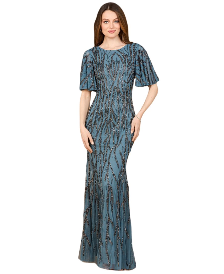 Это потрясающее платье украшено изысканной вышивкой бисером и рукавами-крылышками, что придает ему нотку игривости. Идеально подойдет для любого особого случая.
