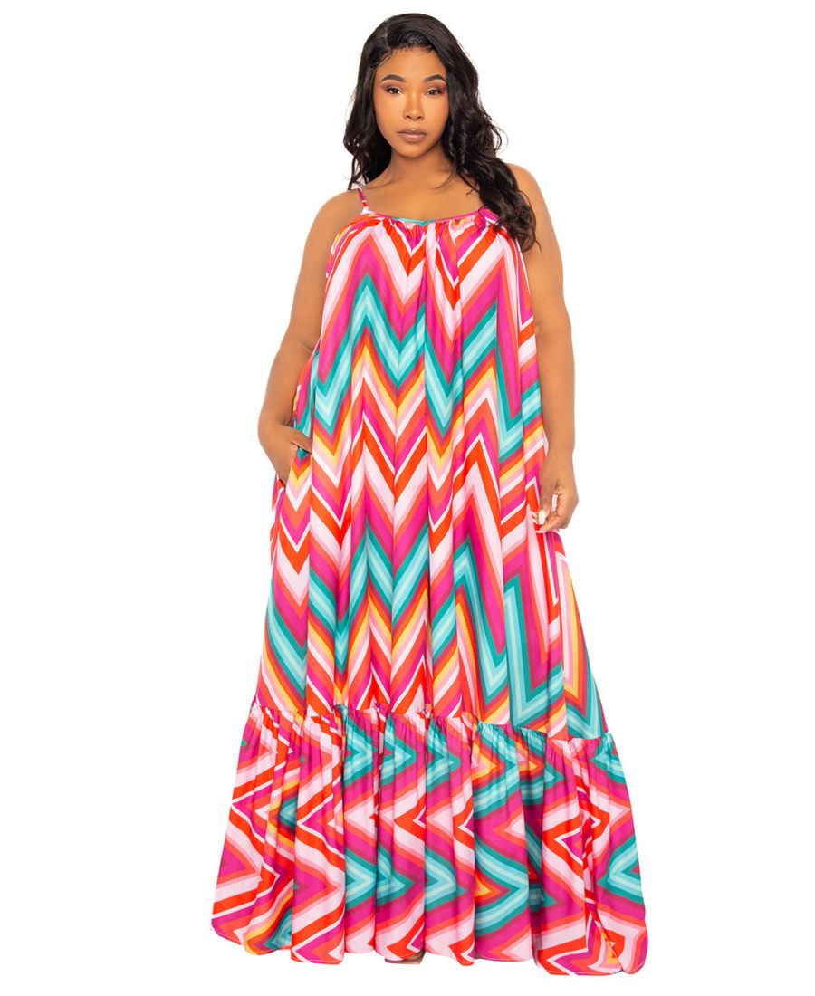 Проведите свой день легко и непринужденно в этом модном макси-платье с шевронным принтом, струящимся силуэтом, регулируемыми бретелями и удобными карманами.