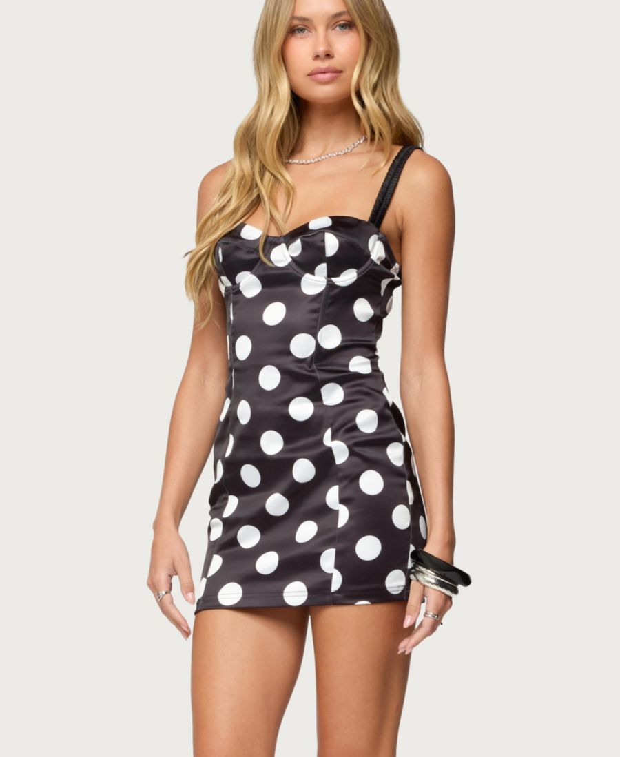 Женское мини-платье в горошек из атласа с чашечками Edikted, Black-and-white