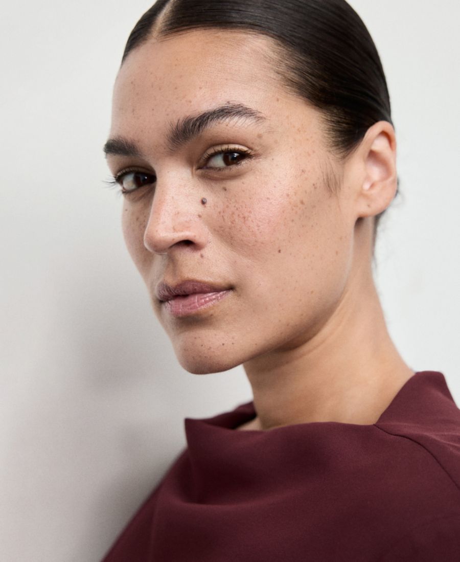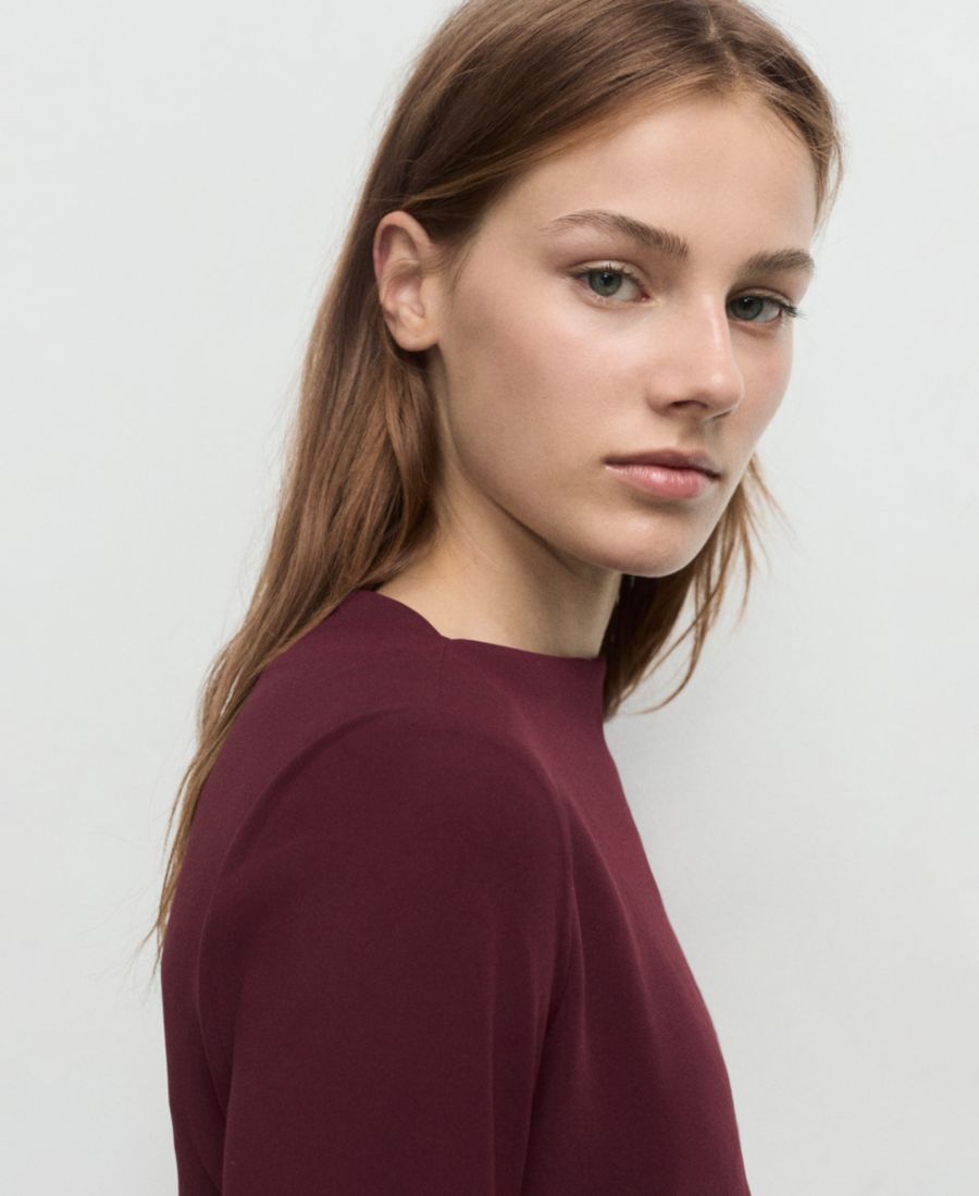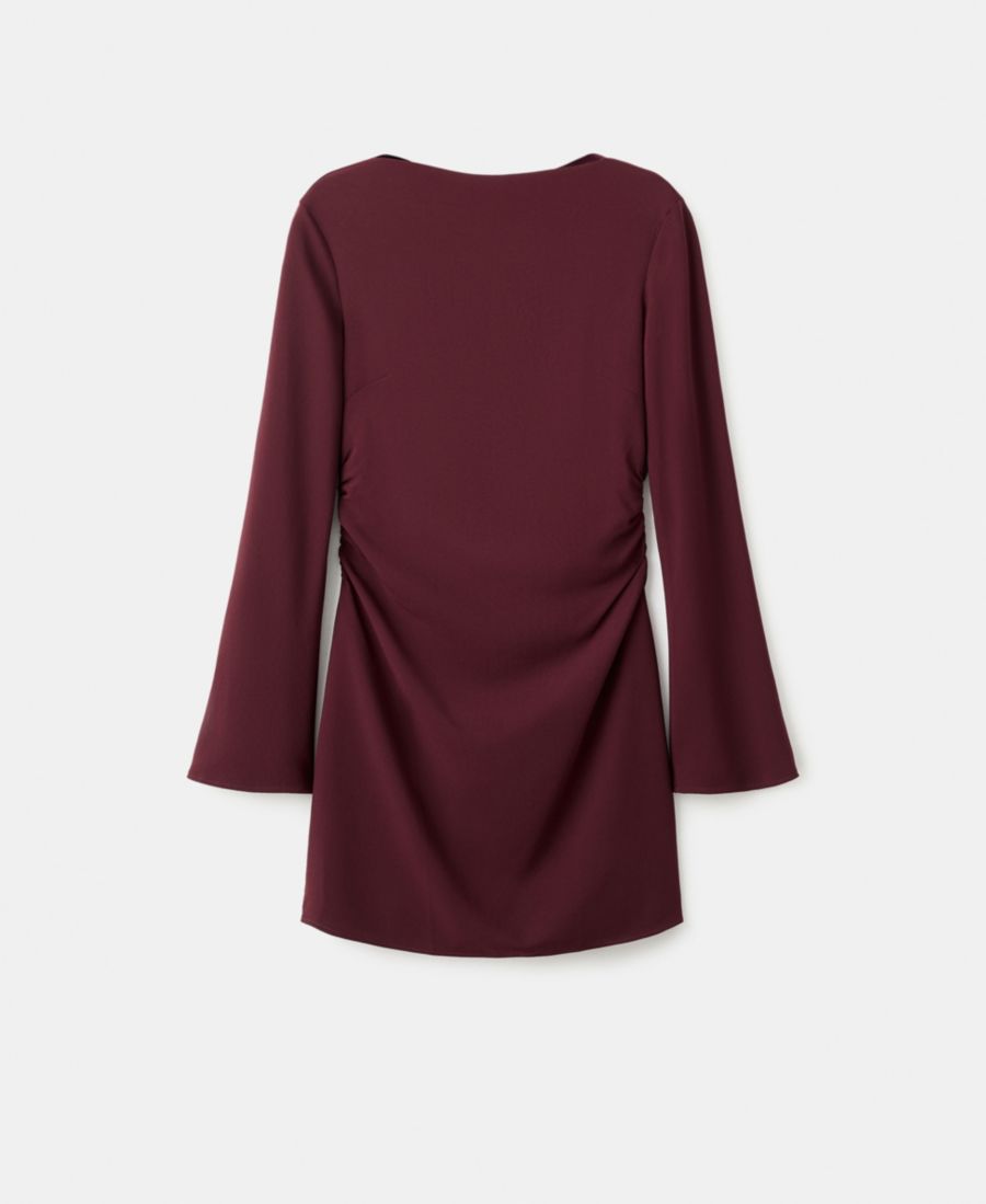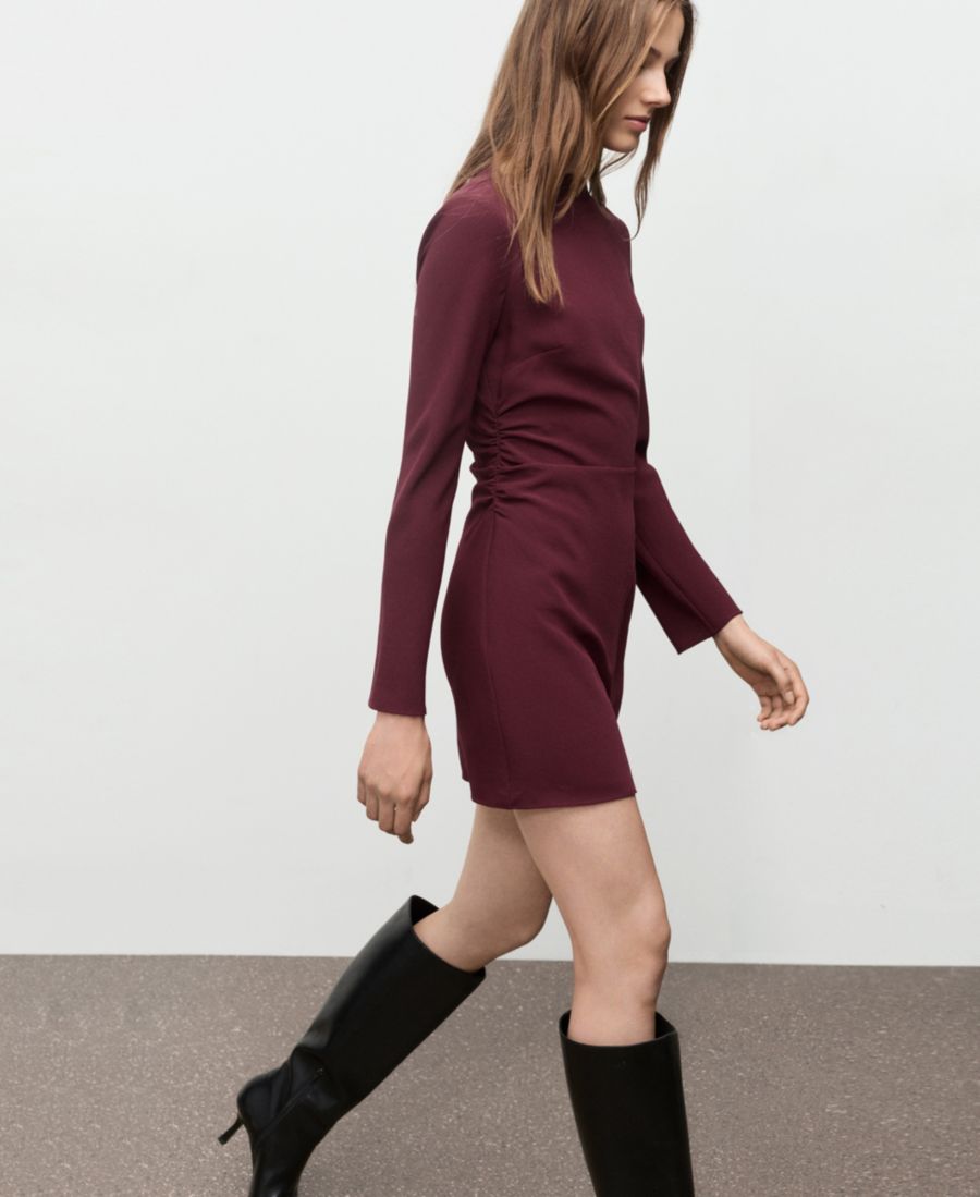 Женское платье с вырезом-лодочкой и сборками MANGO, Maroon