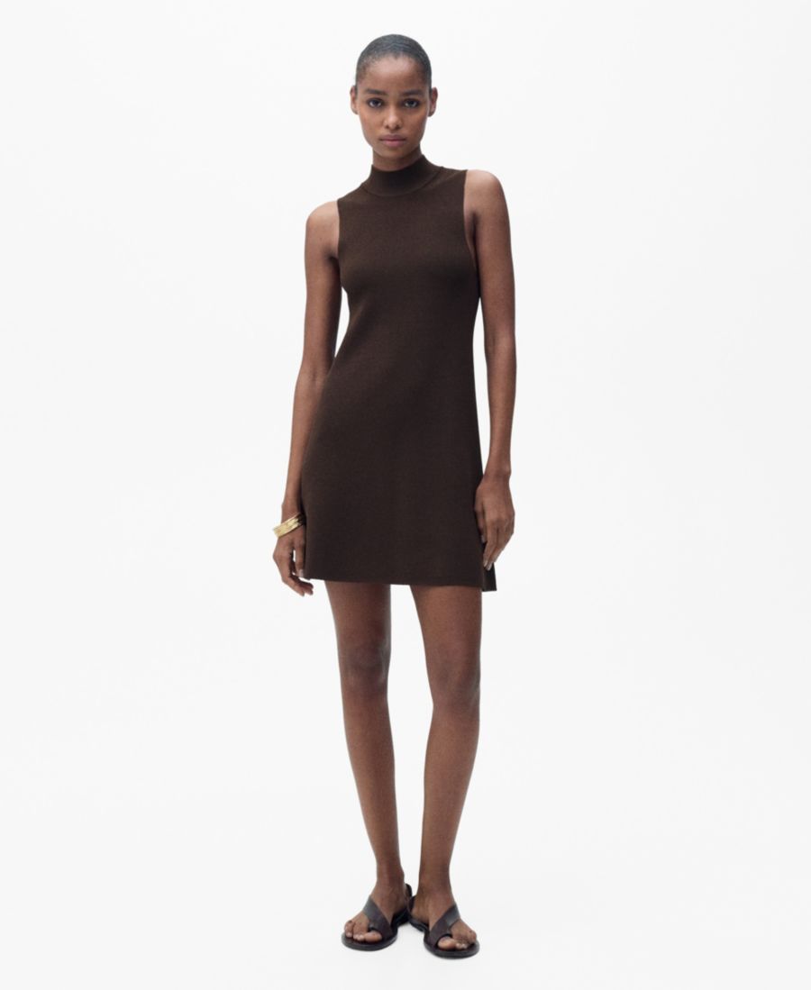 Женское вязаное платье с воротником-стойкой "Перкинс" MANGO, Chocolate