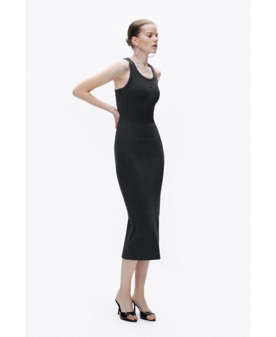 Это облегающее платье-макси, созданное для элегантной изысканности, имеет силуэт, соответствующий размеру, и аккуратный круглый вырез горловины.