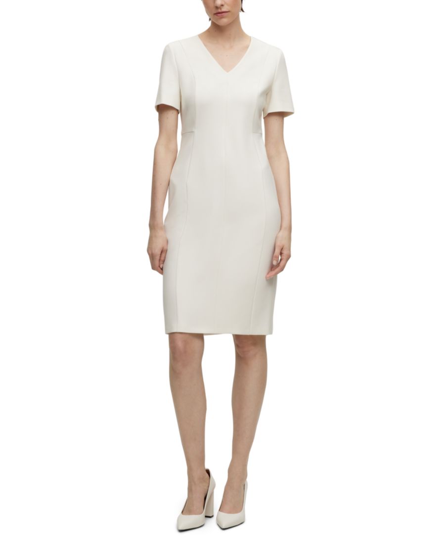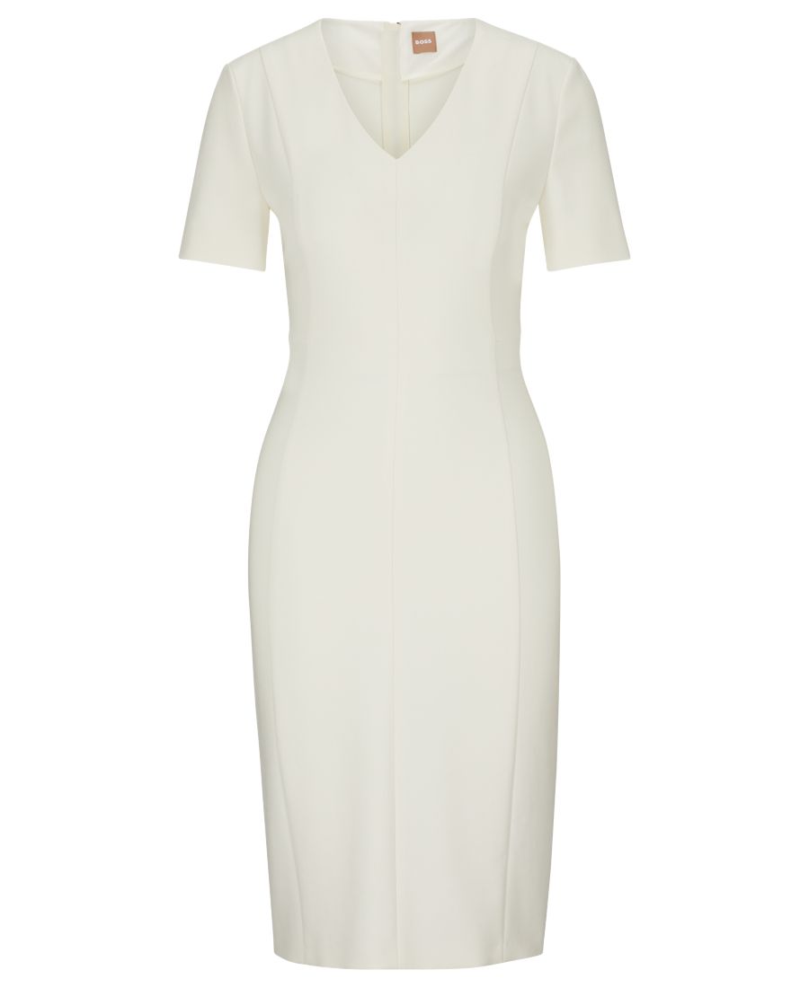 Женское деловое платье приталенного кроя из эластичной ткани Hugo Boss, Open White