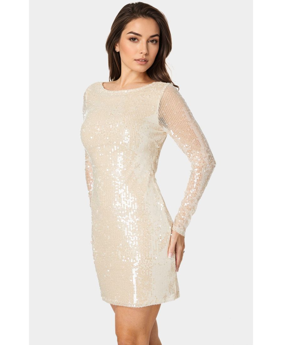 Мини-платье Bebe с воротником-хомутом и пайетками - это гламурный и привлекательный наряд, идеально подходящий для особых случаев и вечеринок.