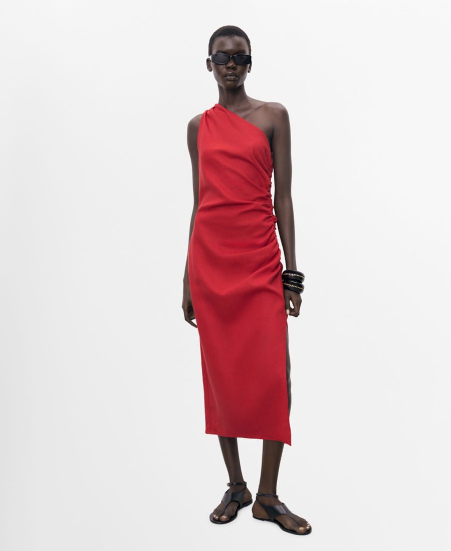 Женское платье из лиоцелла с асимметричным вырезом MANGO, Red