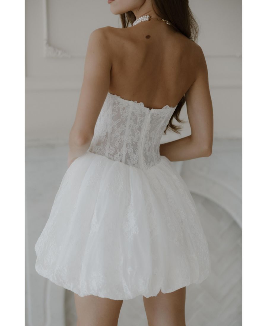 Платье Жюльетта - кружевное мини-платье с корсетным лифом и пышной юбкой-пузырем. Идеально подходит для невесты, которая переписывает правила!