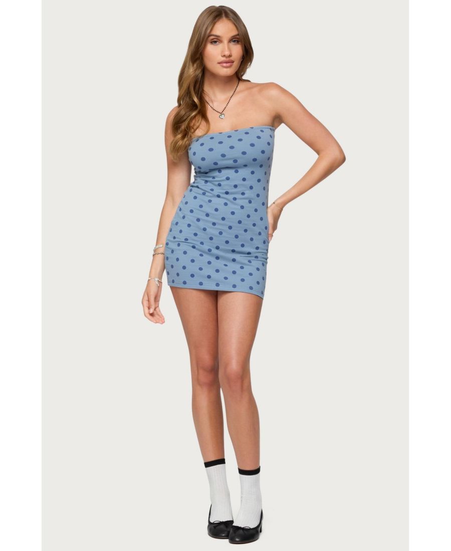 Женское мини-платье без бретелей Lewis в горошек Edikted, Blue