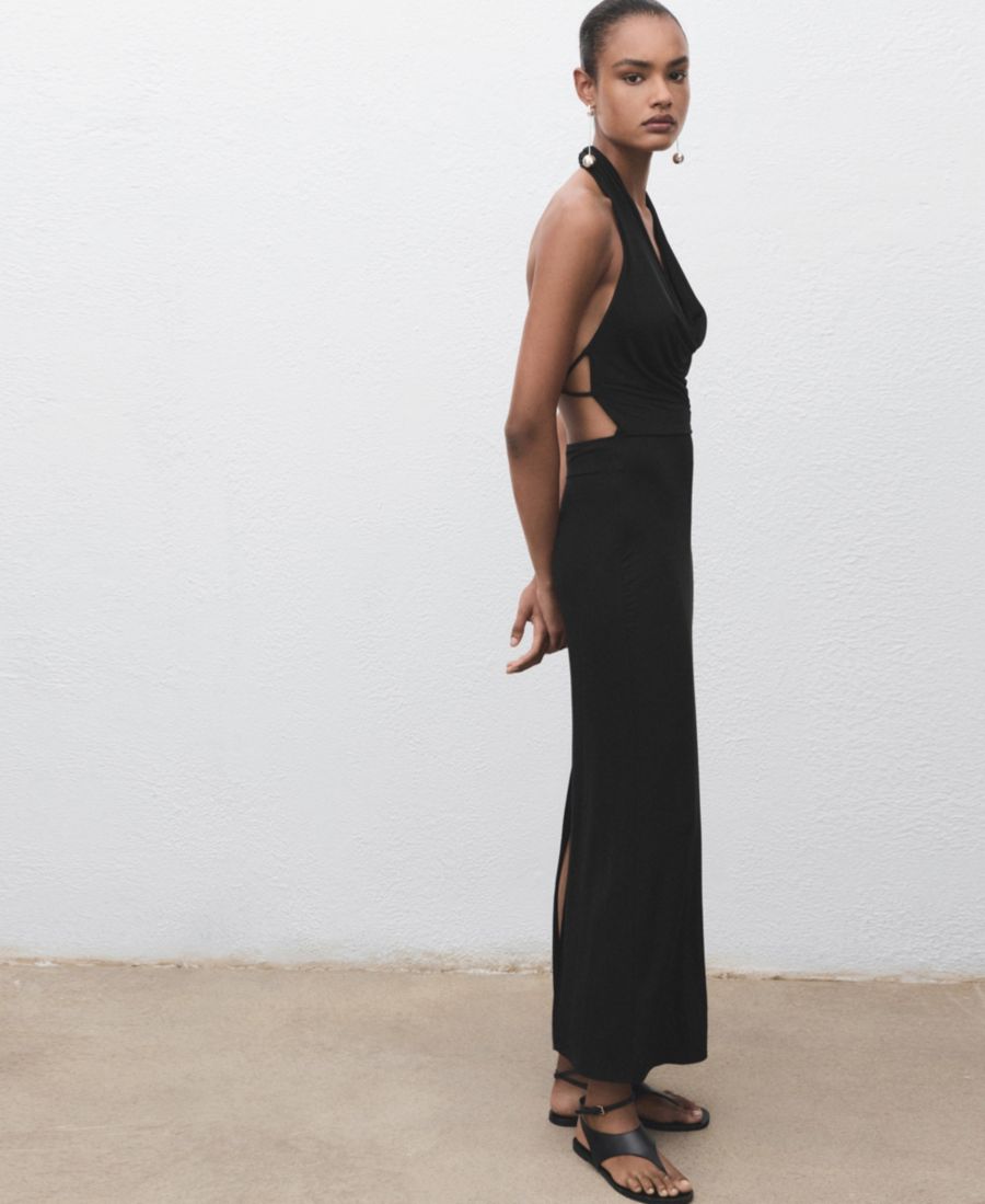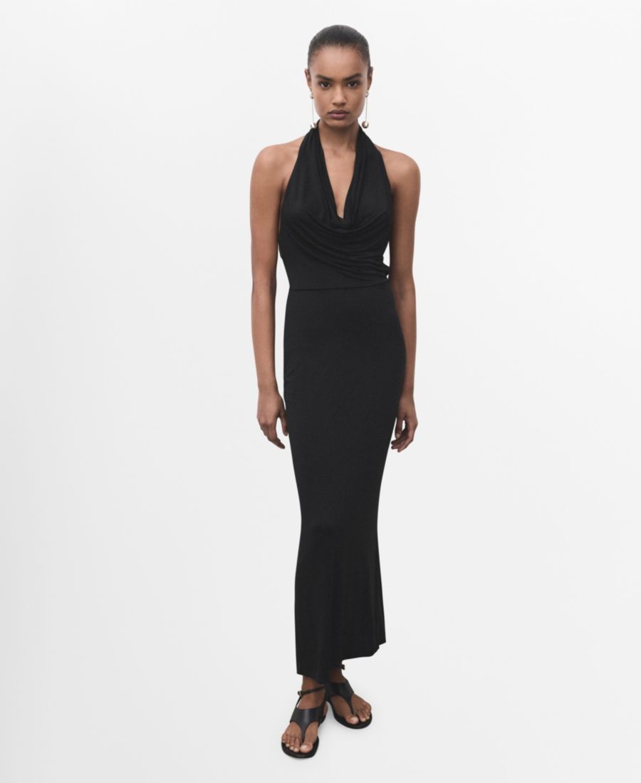Отдайте предпочтение простоте с платьем Draped Open-back Dress от Mango. Это длинное платье имеет облегающий крой и не требует рукавов.
