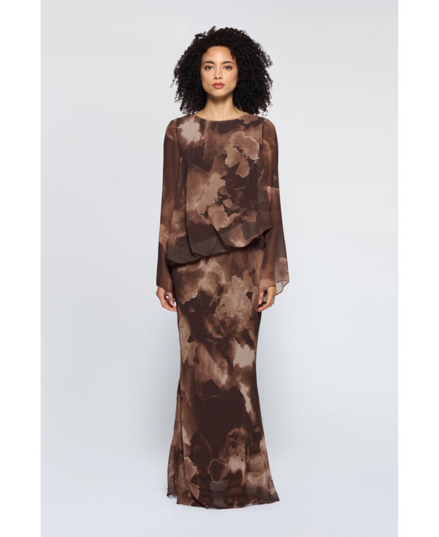 Платье Billi - потрясающее коричневое макси-платье, украшенное богатым цветочным принтом, который придает силуэту глубину и романтику.