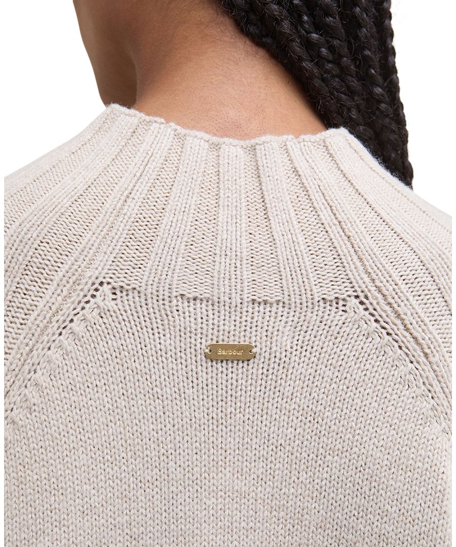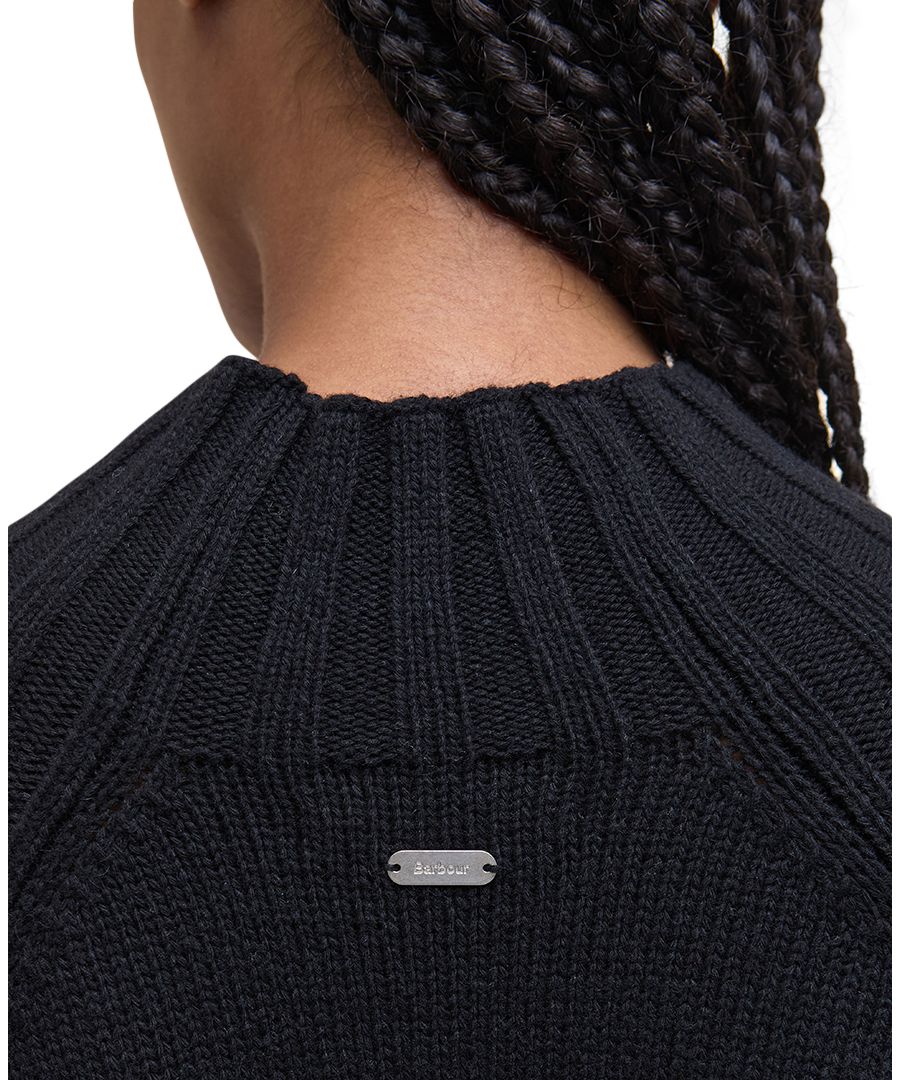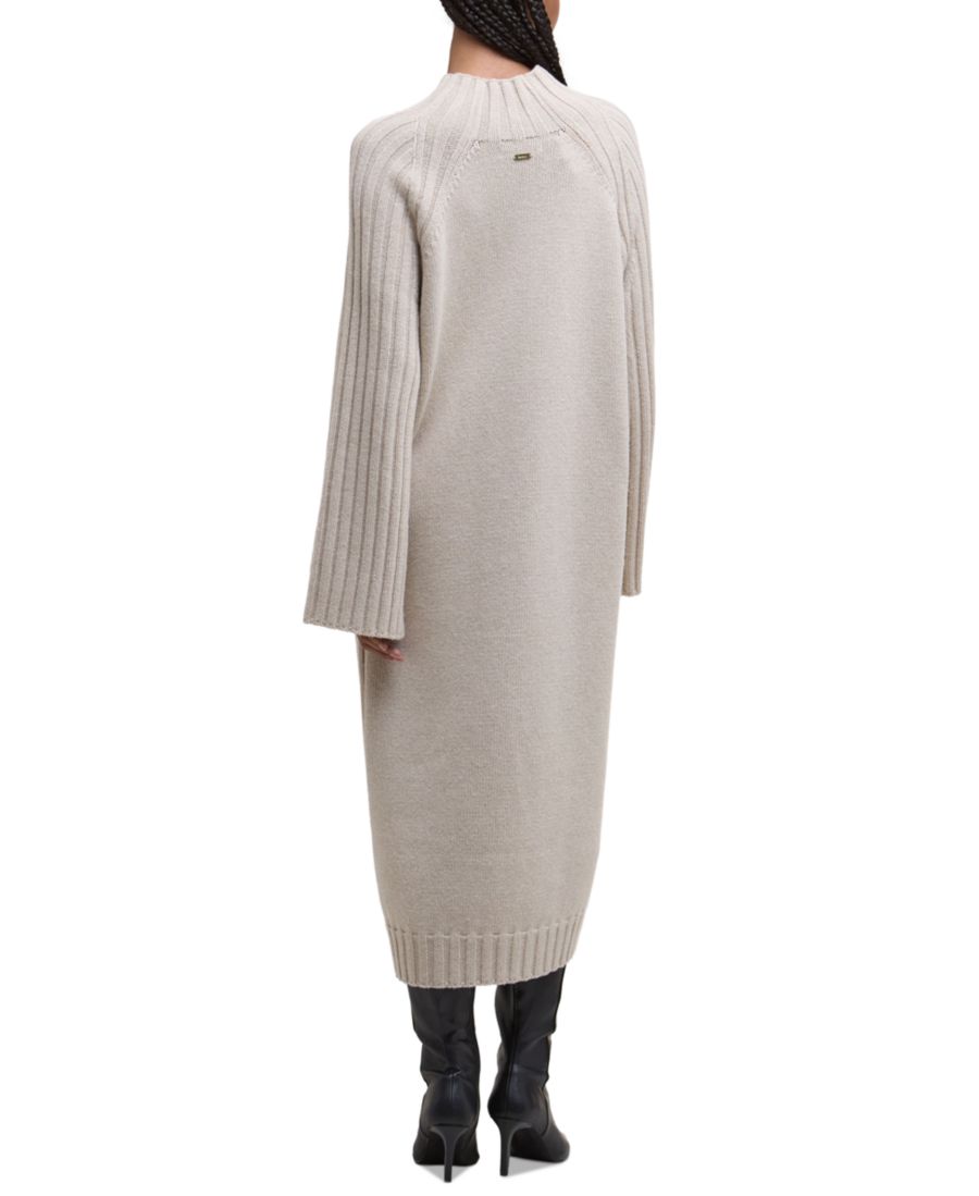 Это современное платье-миди от Barbour с воротником-стойкой, широкими рукавами и уютным трикотажным полотном из смесовой шерсти.