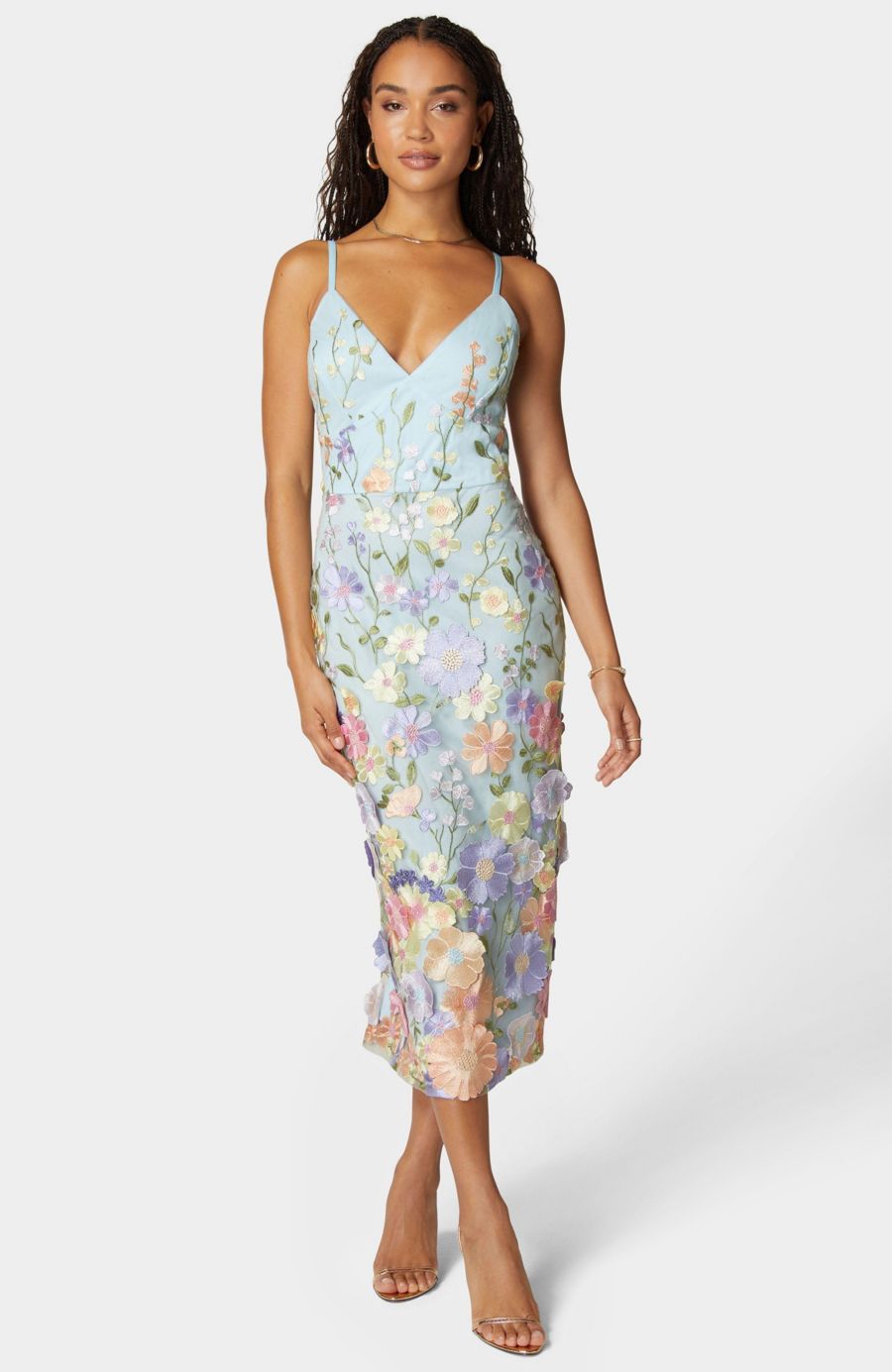Женское миди-платье с цветочной вышивкой Bebe, Blue multi