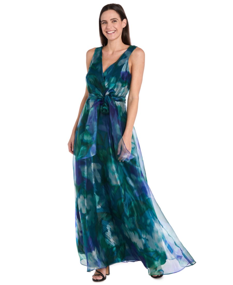 Бантик на талии подчеркивает струящийся А-образный силуэт этого потрясающего платья от R & M Richards для миниатюрных девушек.