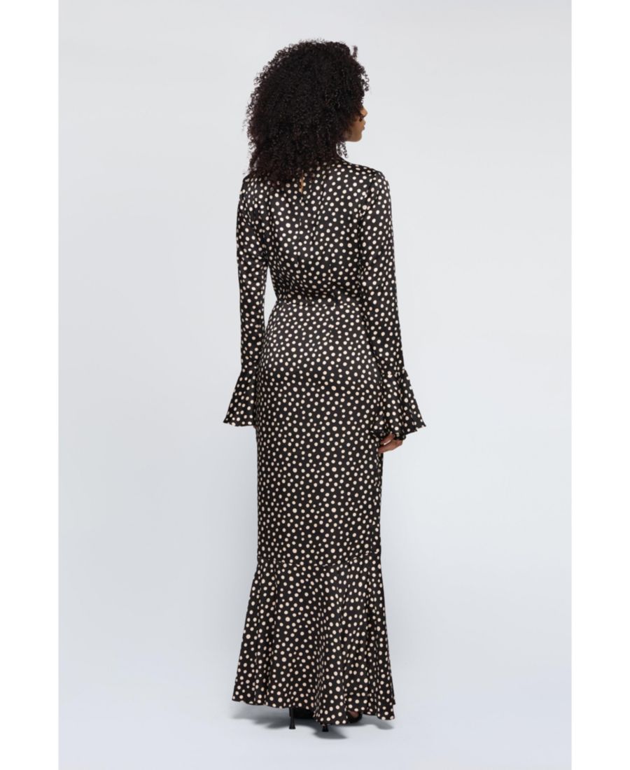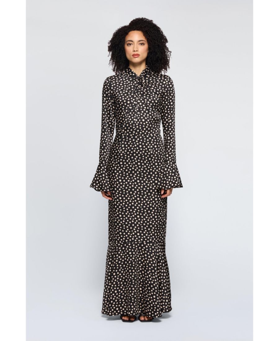 Платье Toni - элегантное длинное платье с монохромным принтом и стильным вырезом-перекрутом для создания современного образа.
