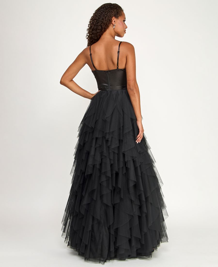 Платье для юниоров с вырезом сердечко и каскадными оборками City Studios, Black