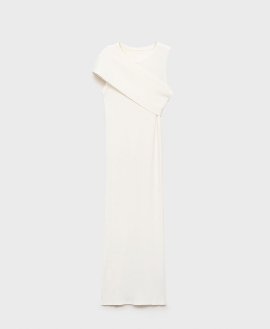 Женское вязаное платье с асимметричными рукавами MANGO, White