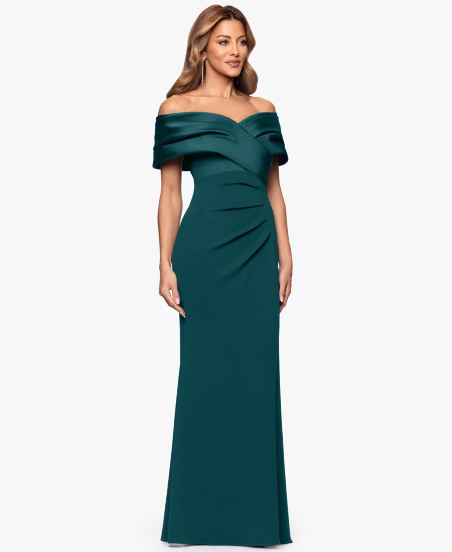 Вау! В этом потрясающем миниатюрном платье с открытыми плечами от Betsy & Adam вы непременно привлечете всеобщее внимание.