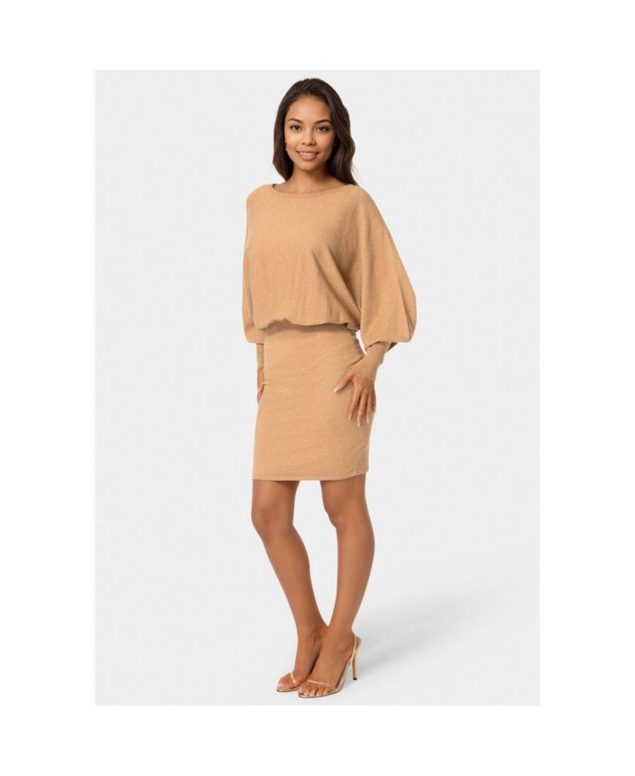 Женское платье-миди с вырезом-лодочкой, свитер-блудзсон Bebe, Camel