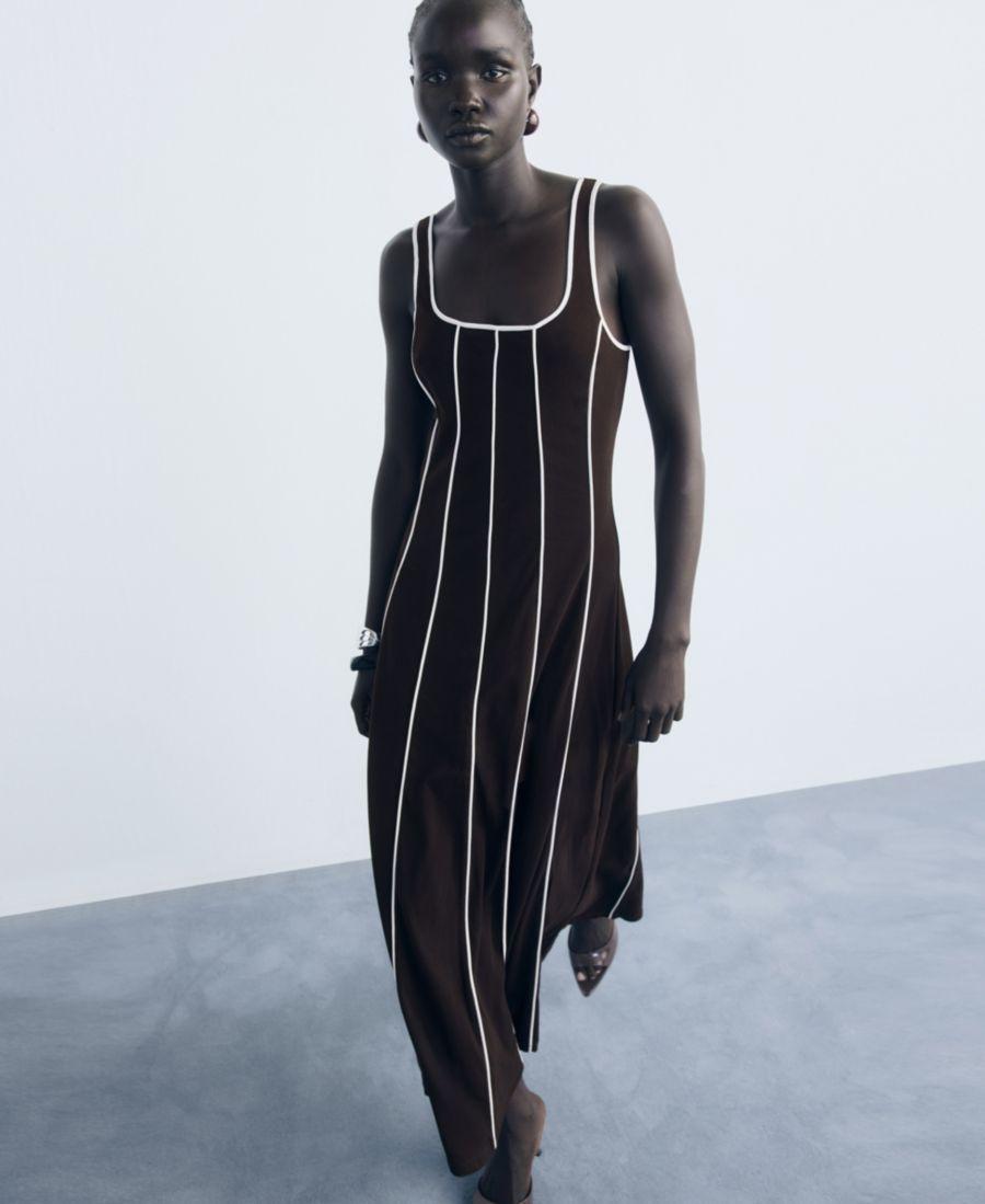 Женское полосатое хлопковое платье MANGO, Brown 7 129₽