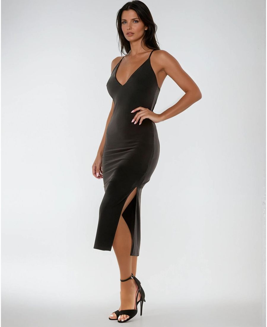 Платье отличается элегантным силуэтом и замысловатой отделкой из золотых полос, которая добавляет нотку роскоши и изысканности. Изготовленное из высококачественной ткани, платье обеспечивает комфортную посадку, подчеркивая изгибы фигуры. Идеально подходит для вечеринок или вечерних мероприятий, это платье сочетает в себе элегантность и смелые детали, чтобы произвести впечатление. 95% полиэстер, 5% эластан. Машинная стирка. Импортное производство.