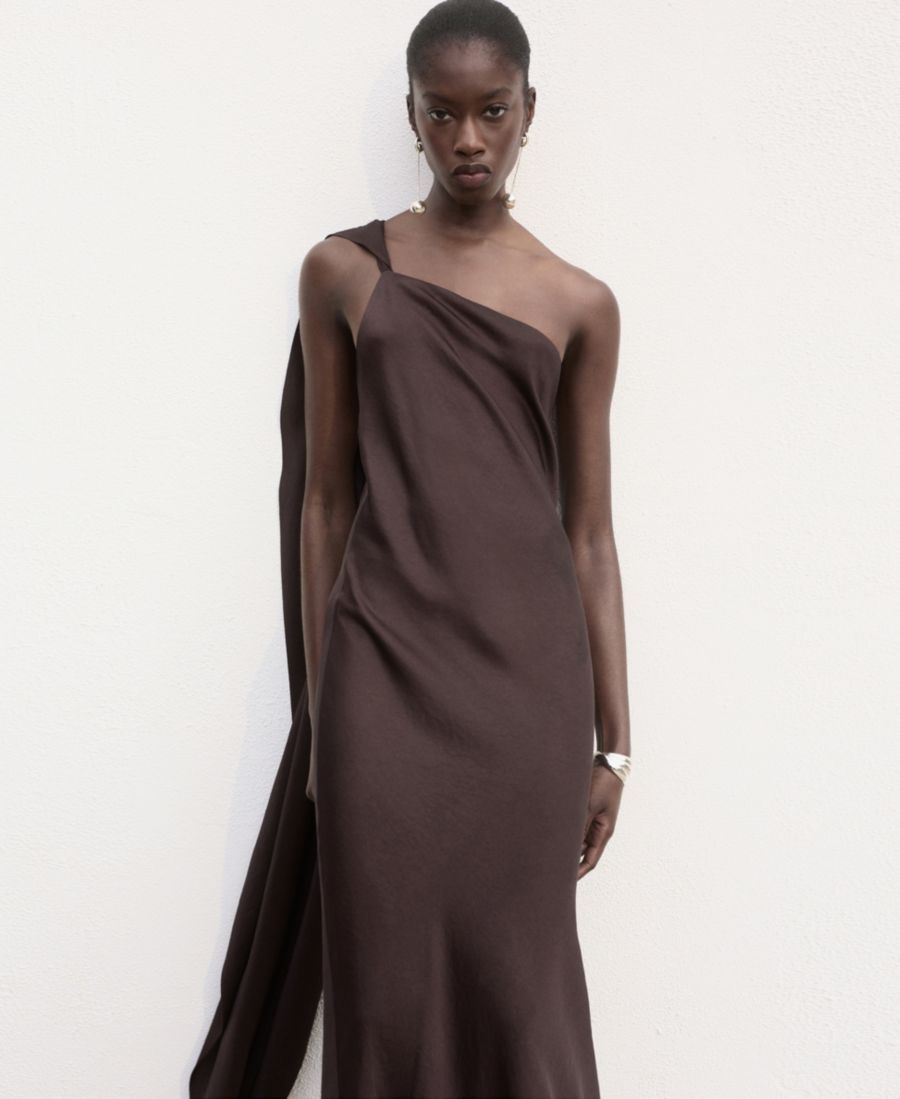 Женское асимметричное атласное платье MANGO, Brown 11 610₽
