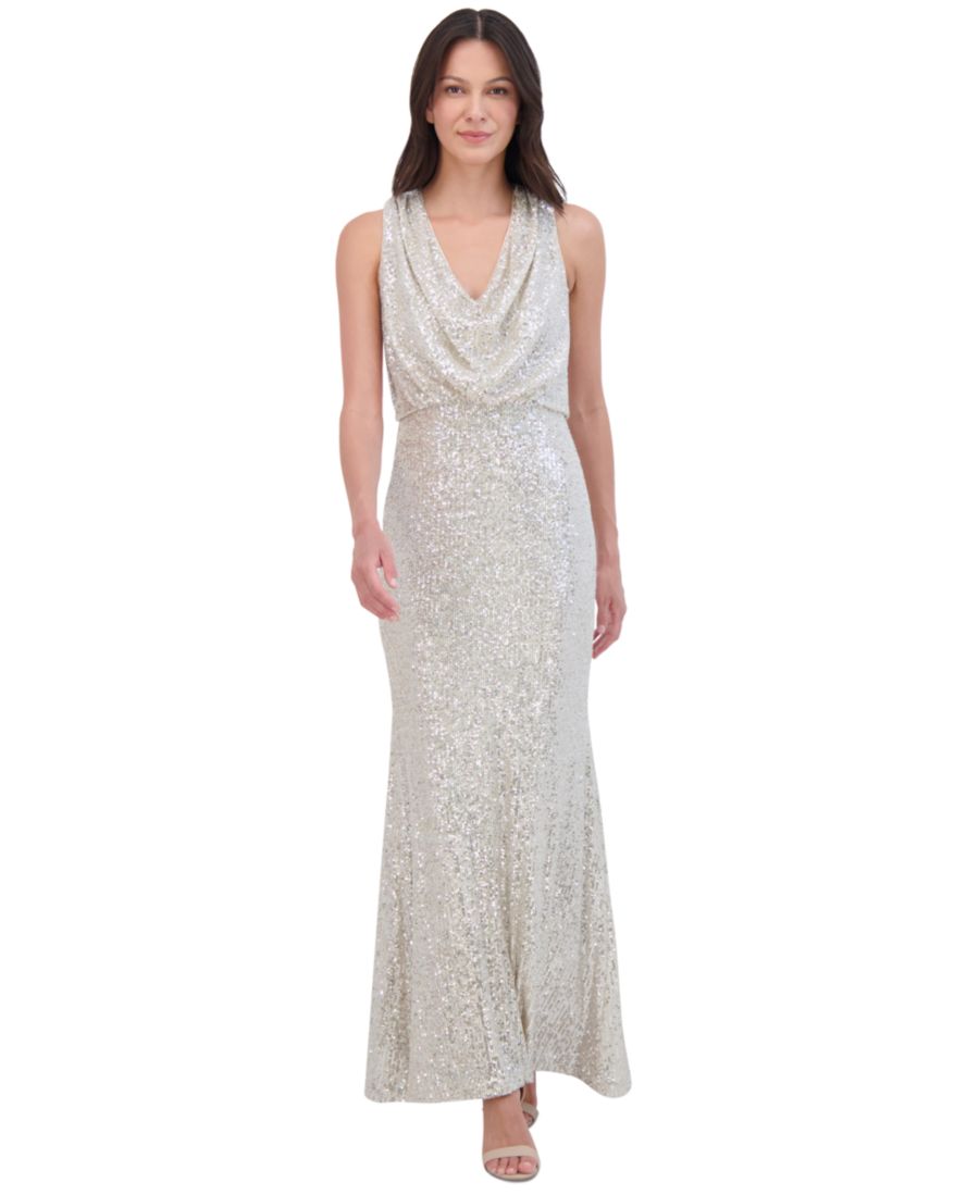 Женское платье с пайетками и воротником-хомутом Eliza J, Silver