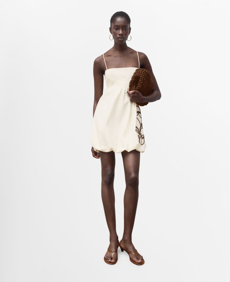 Женское платье с вышивкой и эффектом воздушного шара MANGO, Off White