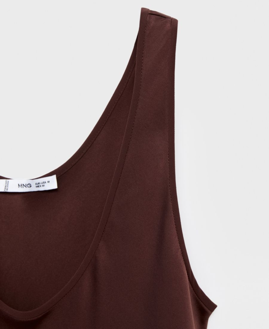 Простота и элегантность атласного платья с глубоким вырезом от Mango - вот что отличает это платье.