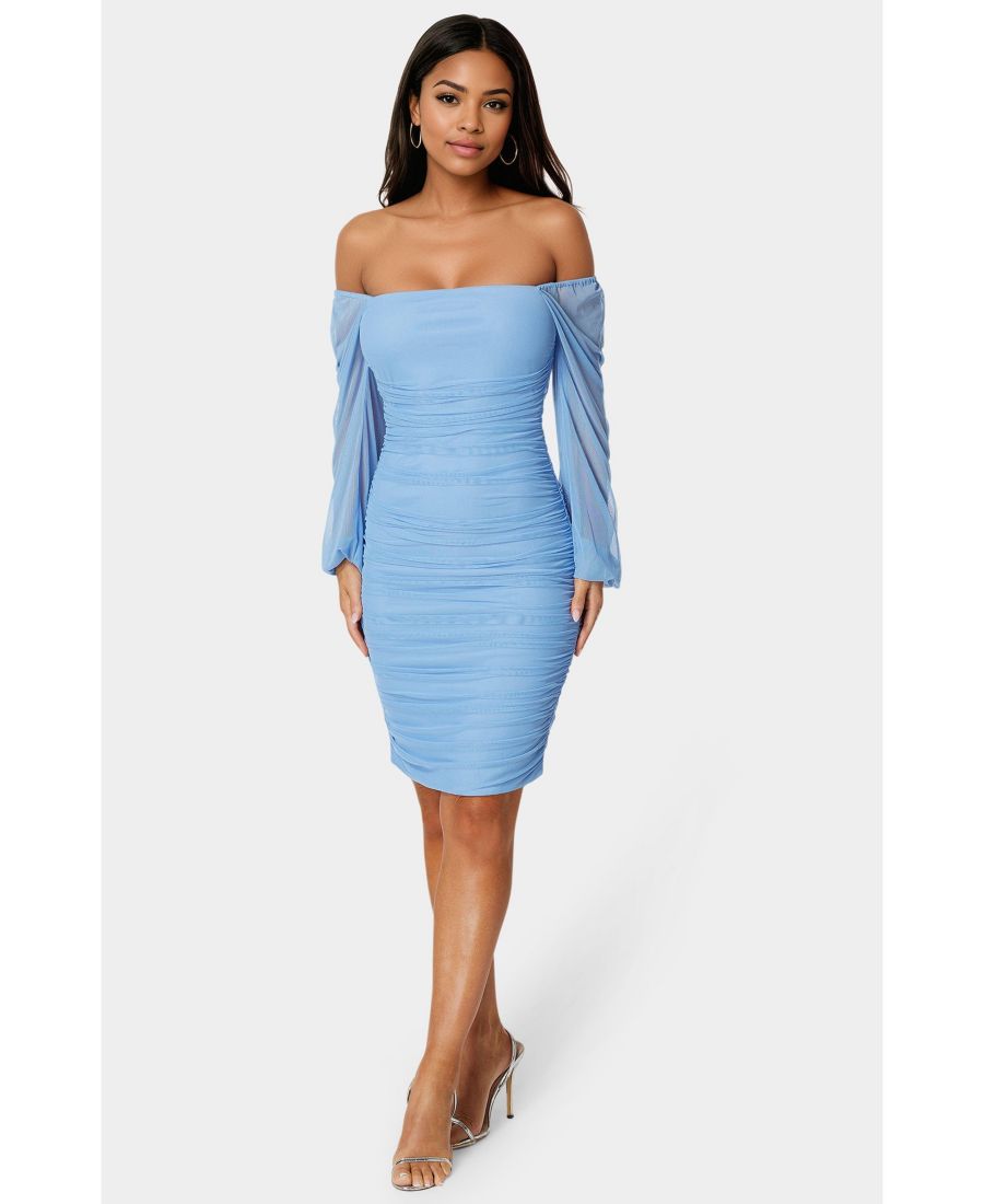 Женское миди-платье с рукавами-блузонами и сборками Bebe, Blue