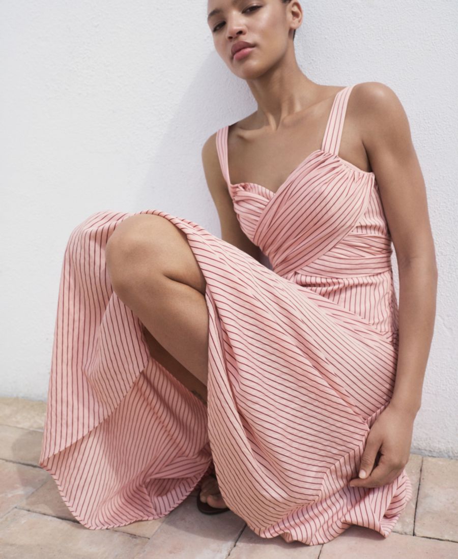 Женское полосатое платье-халат MANGO, Pink