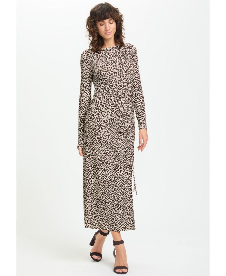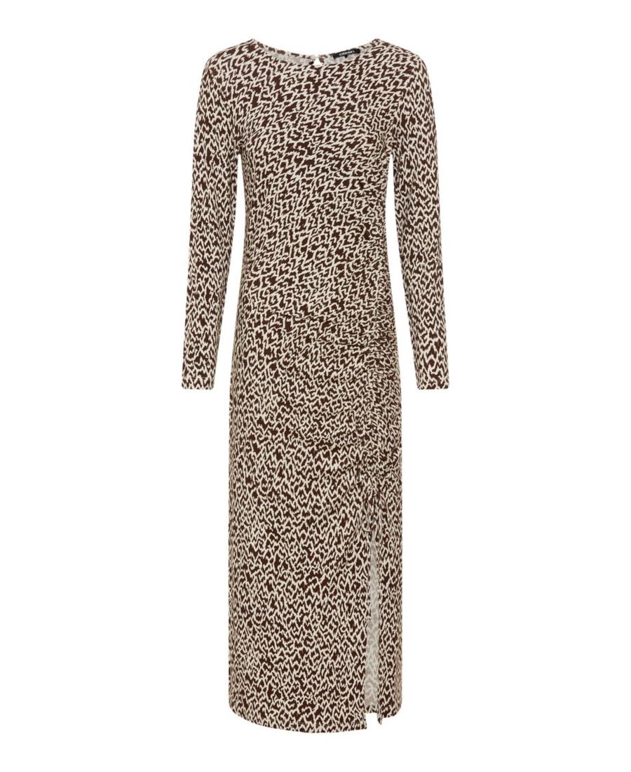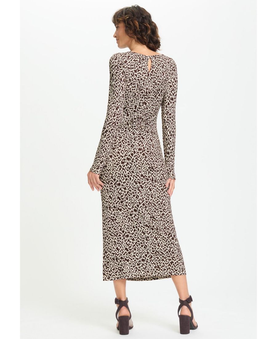 Женское современное облегающее платье миди с анималистическим принтом Olsen, Chocolate