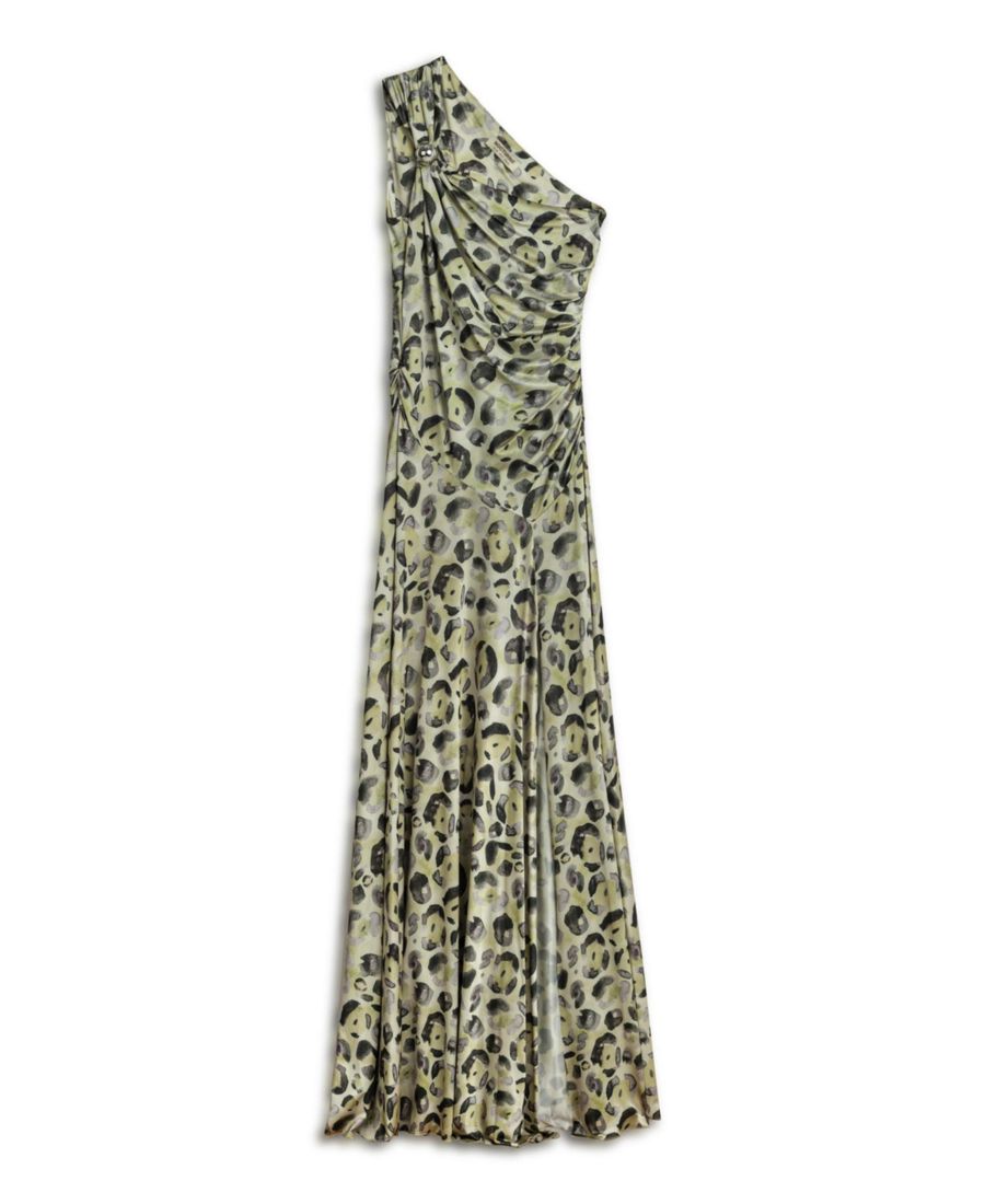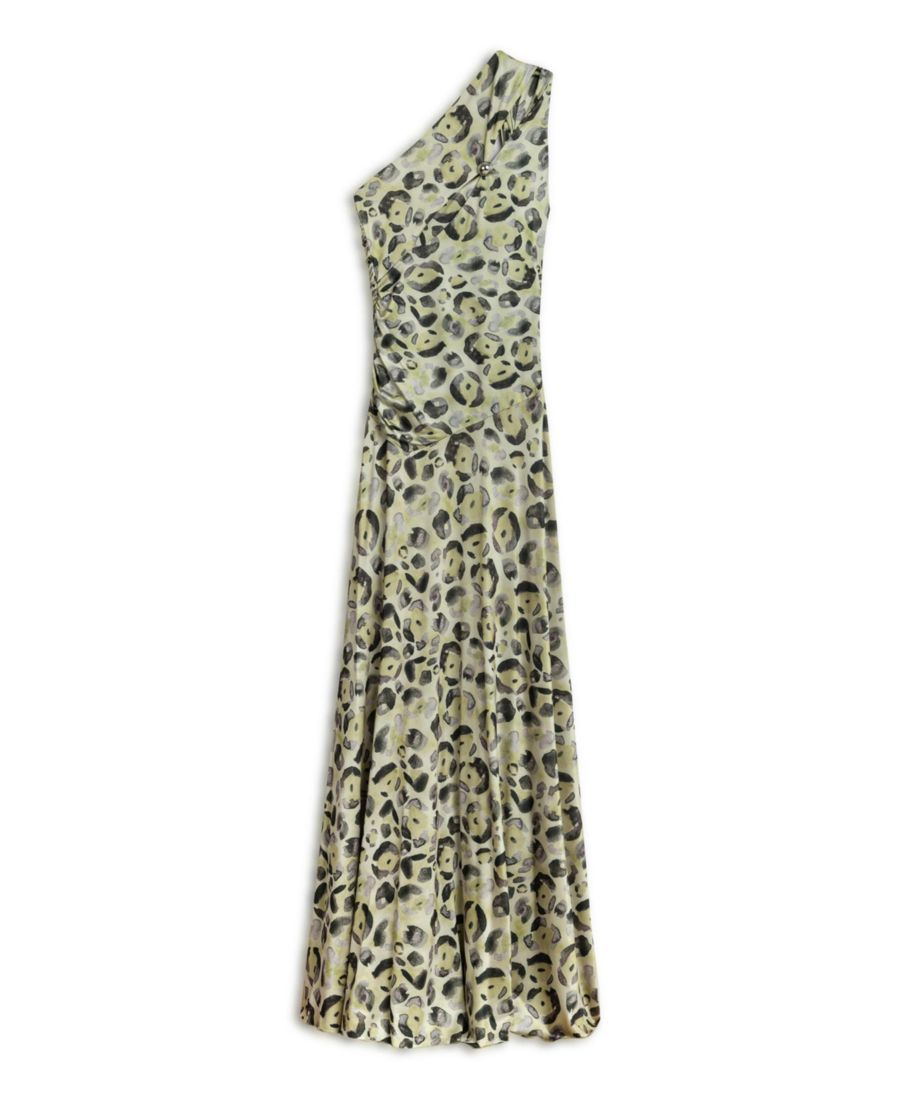 Насладитесь утонченной элегантностью этого длинного платья с одним открытым плечом и принтом.