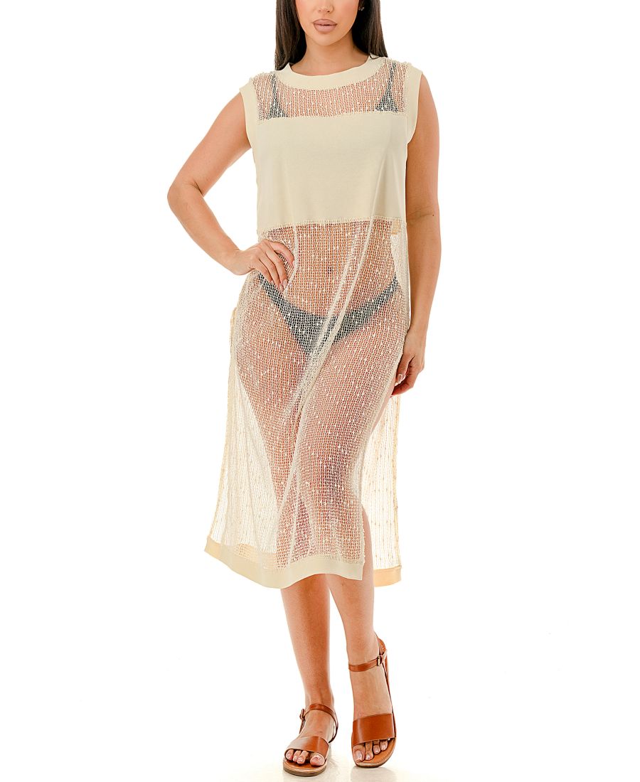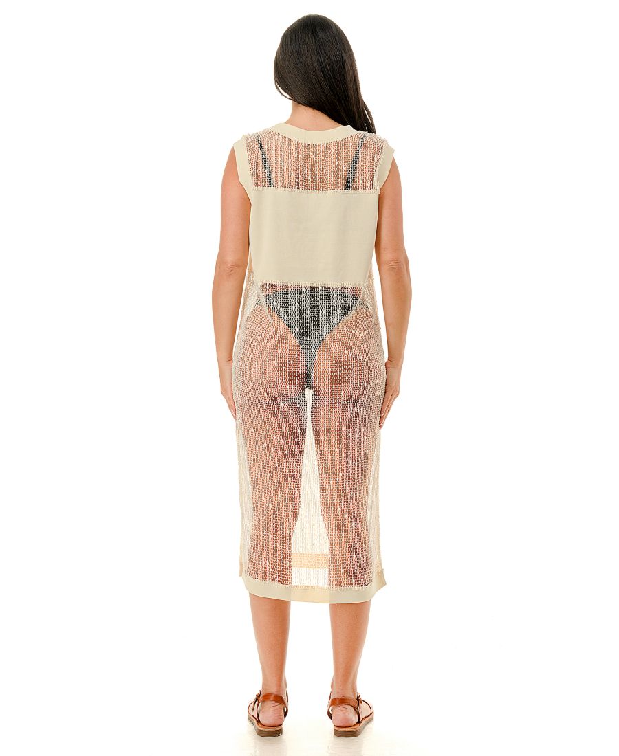 Произведите фурор на пляже в нашем купальном накидке из сетчатой ткани, украшенной пайетками.