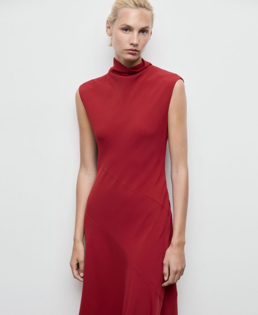 Женское платье без рукавов с высоким воротником MANGO, Red
