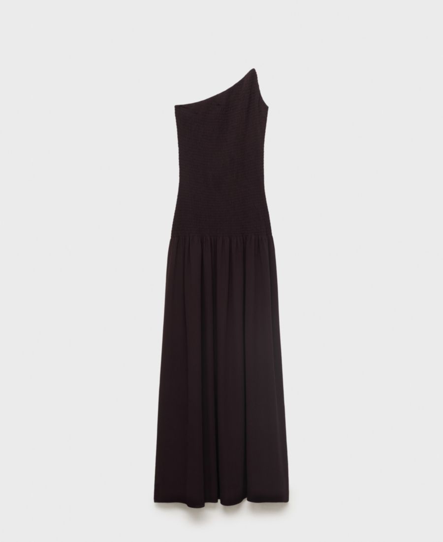 Откройте для себя асимметрию в элегантности с асимметричным платьем со сборками от Mango.
