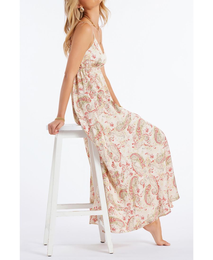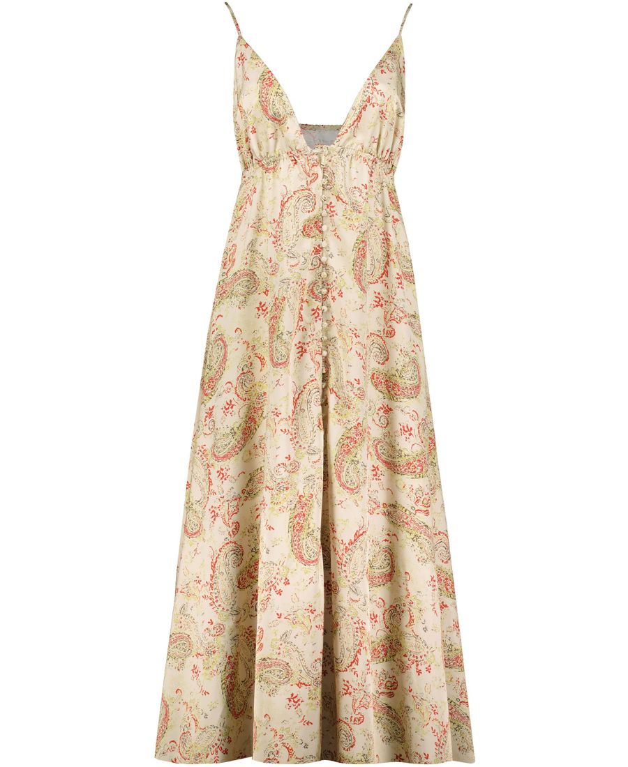Длинное платье с узором пейсли, регулируемыми бретелями и застежкой на пуговицы спереди.